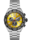 The captivating yellow sunray brushed dial is contrasted by three black azurage finished sub-dials and ultra-legible Super-LumiNova®-applied hands and markers.