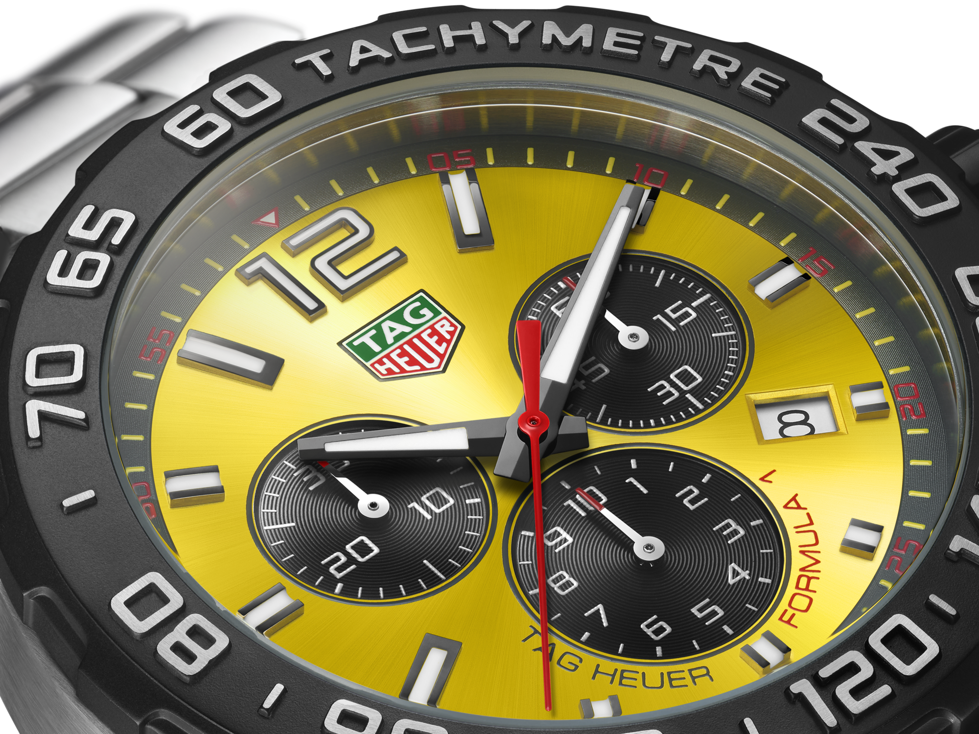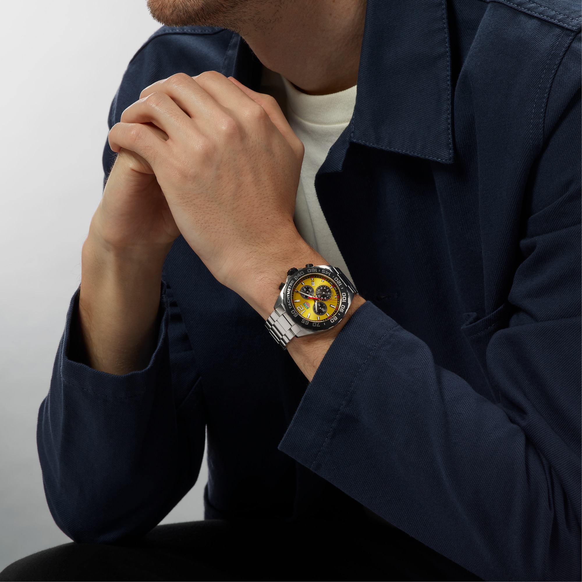With the black PVD tachymeter, measuring speed and distance becomes second nature, while the three-row steel bracelet ensures comfort at every turn.