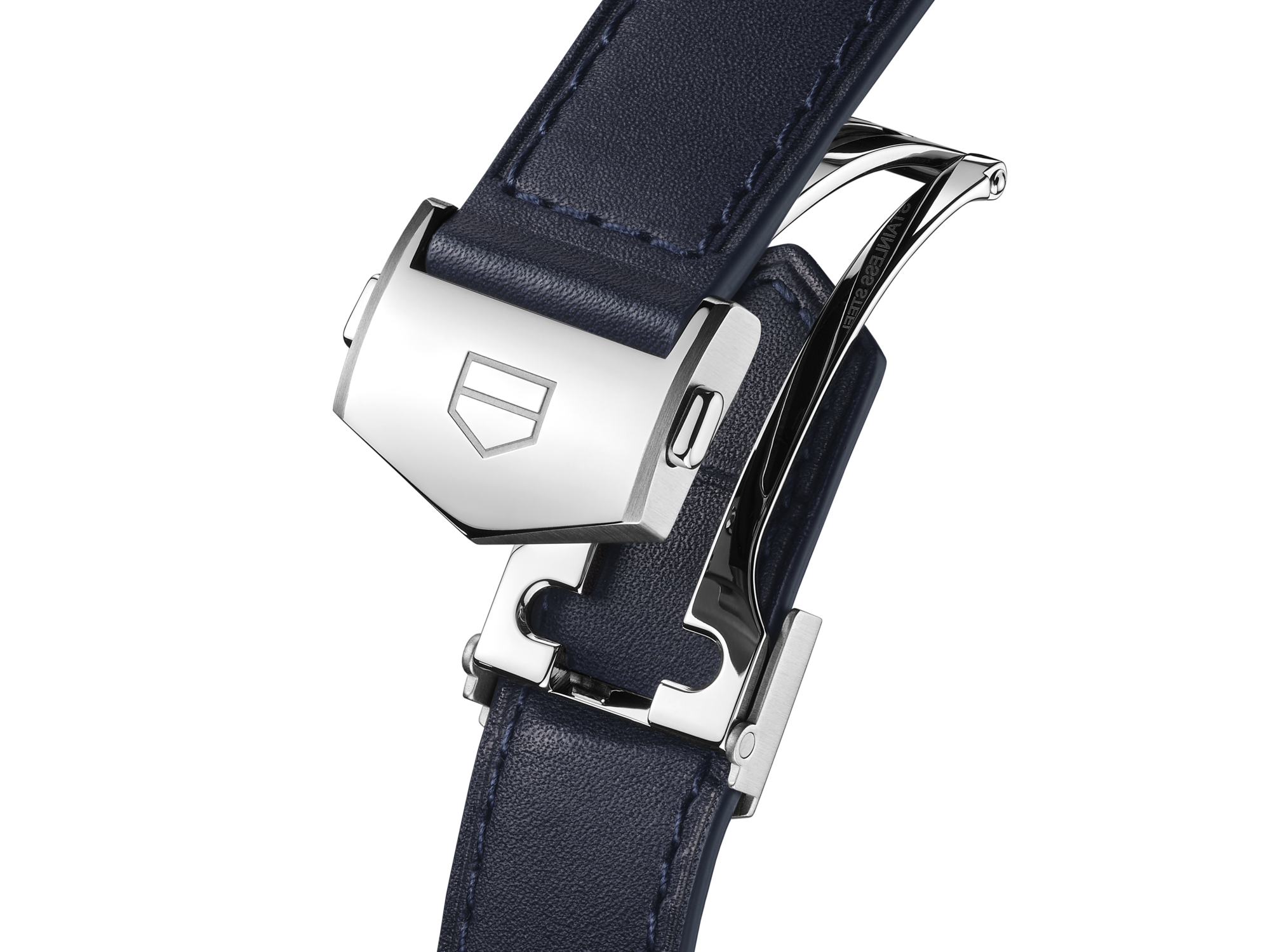 Elevate your TAG Heuer Carrera 39 mm with this smooth blue leather strap, featuring subtle tone-on-tone stitching and a polished steel clasp. A perfect balance of modern flair and timeless style.