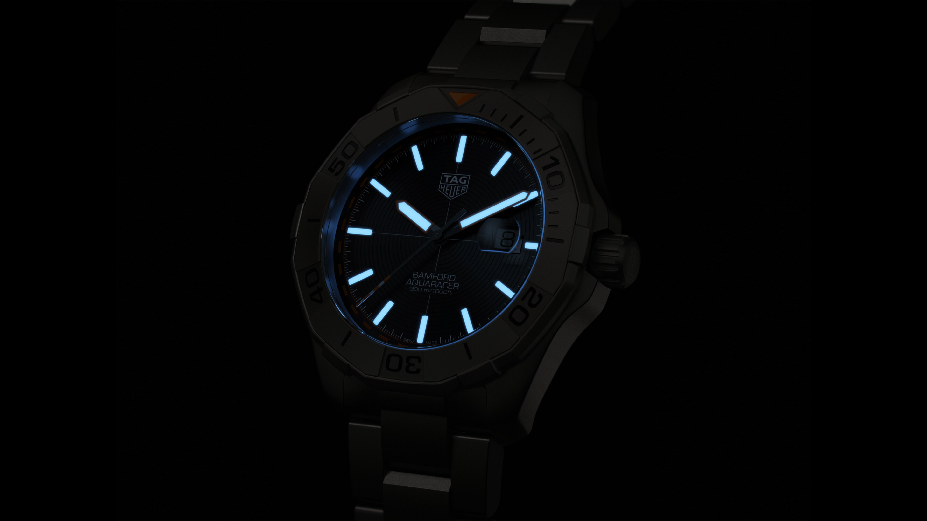 Automático, 43 mm, Titanio WAY208F.BF0638Un reloj Aquaracer Limited Edition con esfera negra, codiseñado con Bamford Watch Department. Limitado a 1500 unidades, este modelo cuenta con una caja ultraligera de 43 mm, con un bisel giratorio unidireccional con escala de 60 minutos y un brazalete de tres hileras, todo confeccionado con titanio grado 2 superresistente.