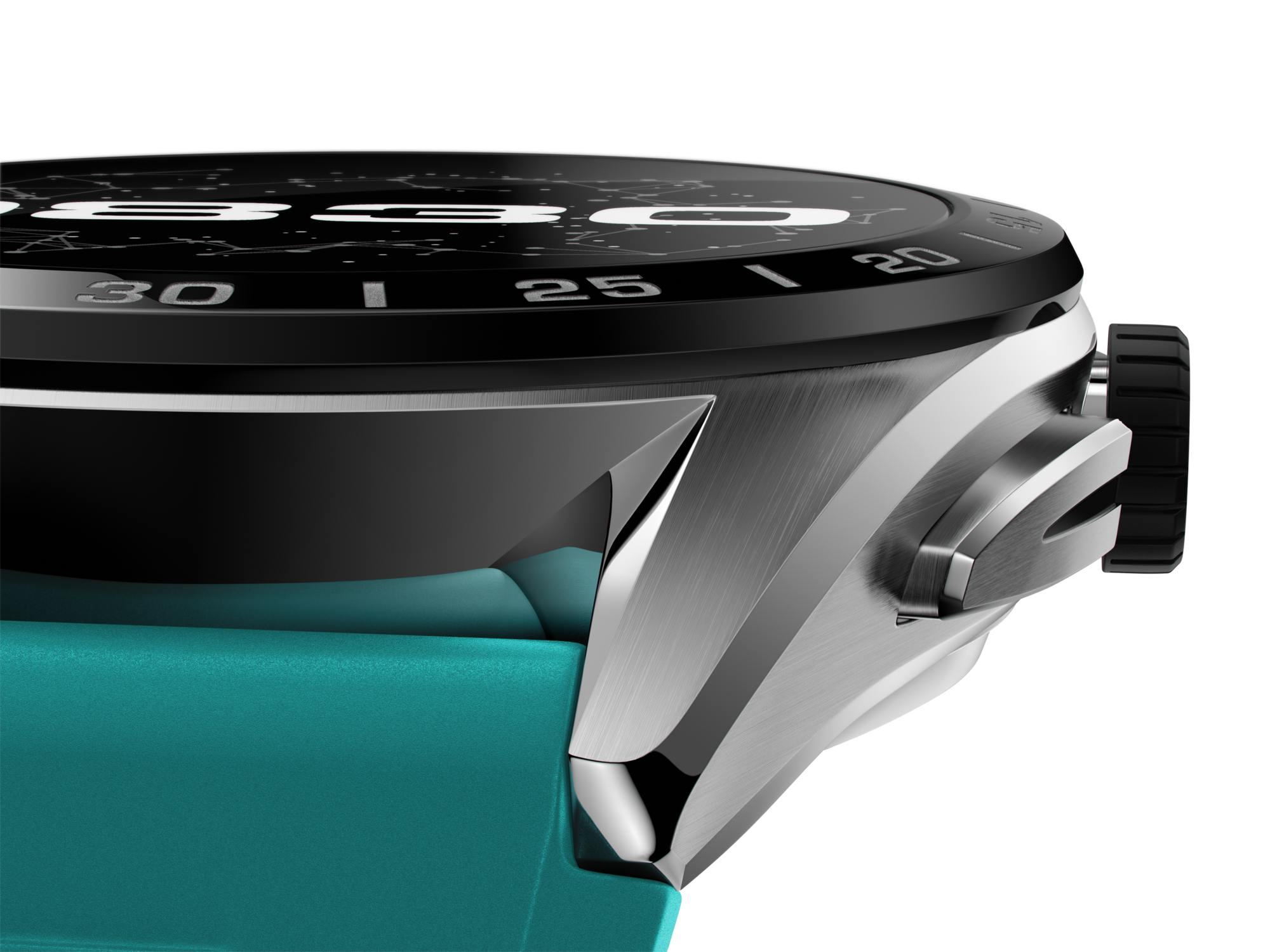 Fine lines and refined Swiss design, matched with a sporty teal strap and the latest tech.