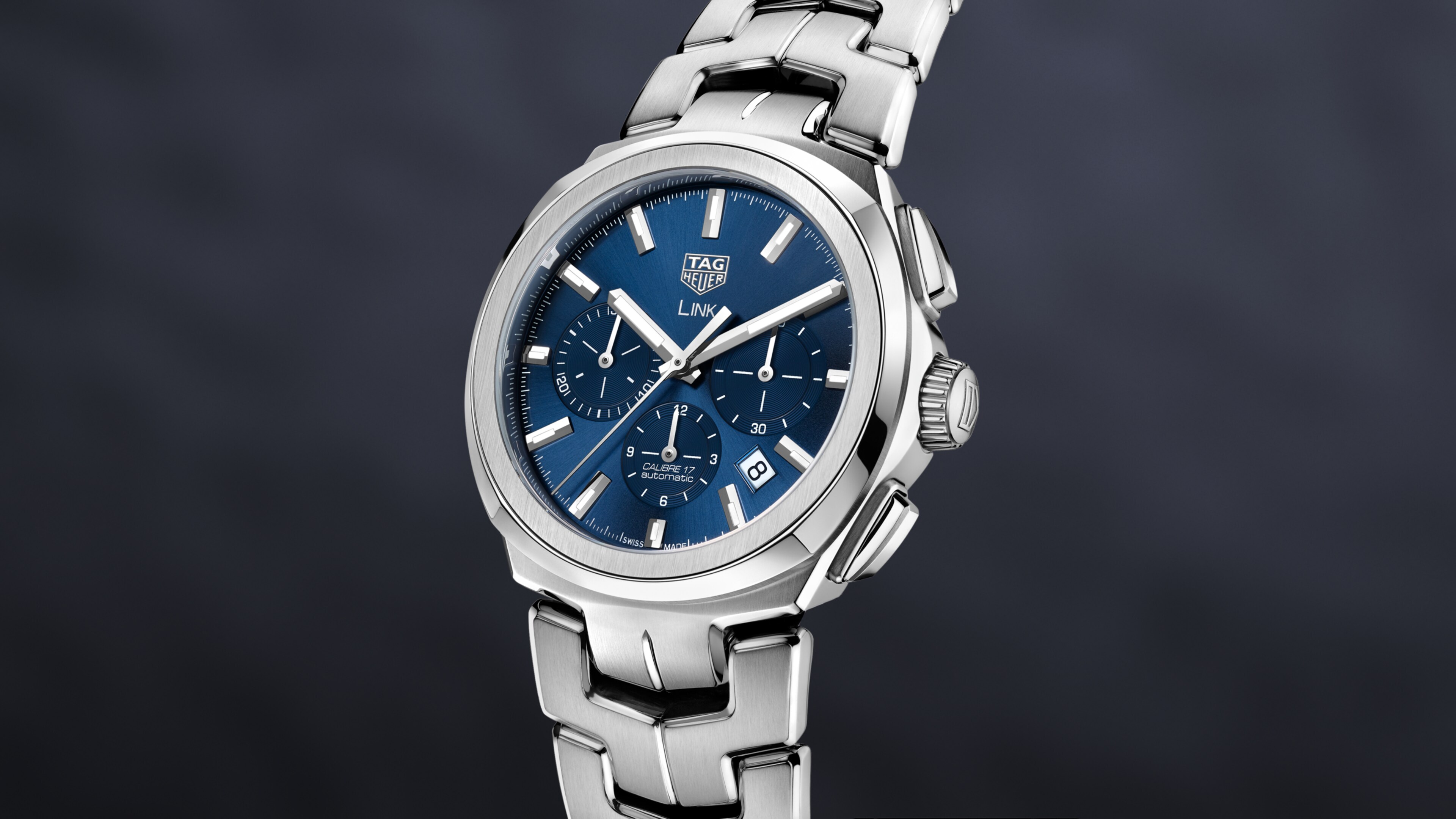 Die Uhr wird von dem TAG Heuer Uhrwerk Calibre 17 angetrieben, das durch den Gehäuseboden aus Saphirglas sichtbar ist, und besitzt ein blaues Zifferblatt. Sie verkörpert die starken Design-Codes und die fließende Symmetrie der Link Kollektion.