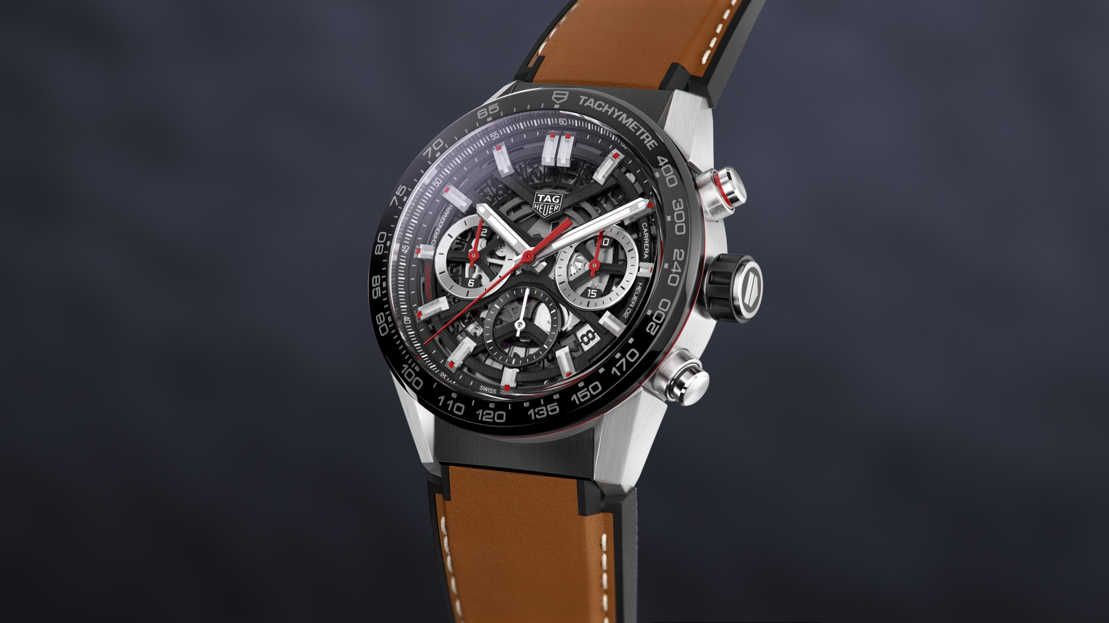 The 43mm steel-cased marvel features a black skeleton dial with silver rings and fire-red hands. The look is straight from the TAG Heuer Carrera’s racing DNA, ramped up with contemporary haute horlogerie technique and savoir-faire.
