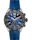 Immerse yourself in the captivating blue dial, adorned with three azure subdials, each featuring a hand tipped in red for the extra rush of energy.