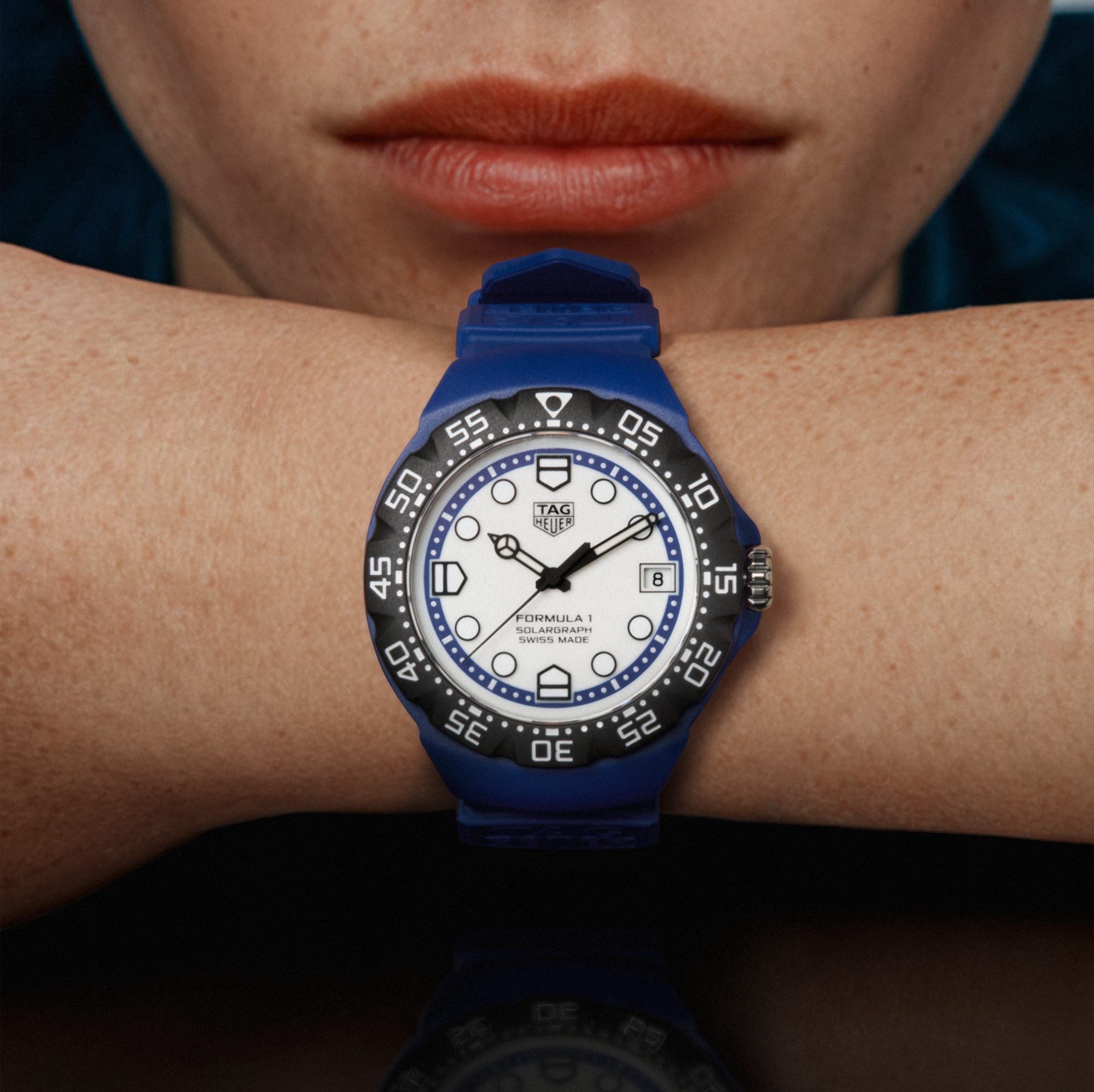 Built for active lifestyles, the 38mm blue TH-Polylight case pairs with a matching rubber strap for flexibility and comfort. The black DLC-coated pin buckle ensures a secure fit.