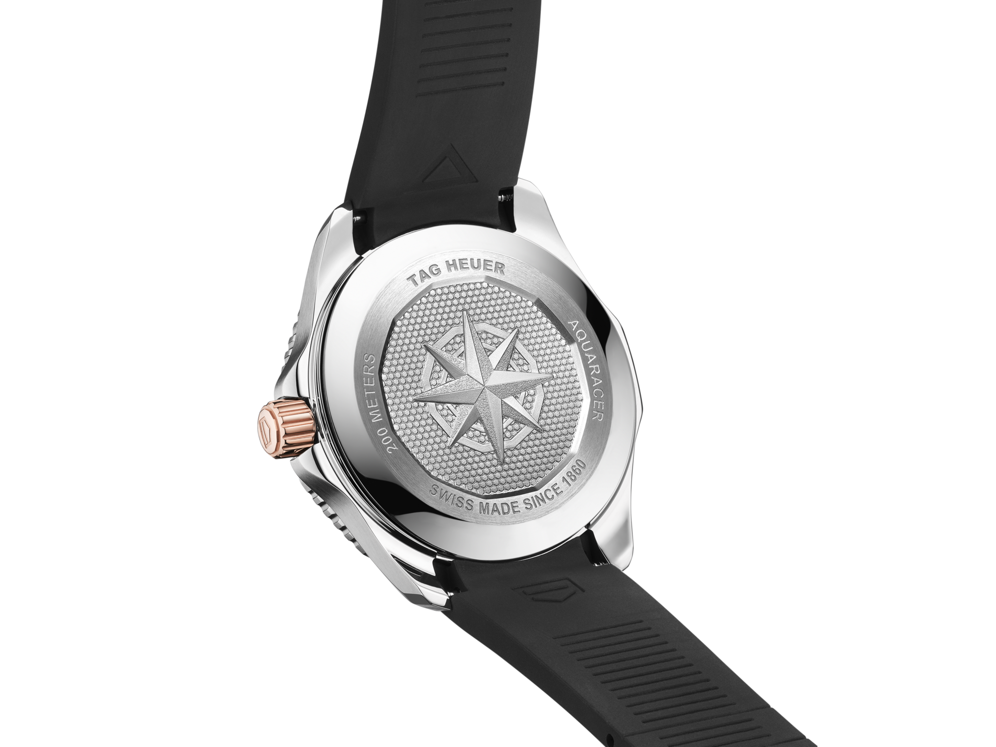 Quand luxe est synonyme de résistance extrême. La lunette incrustée d’or rose 18 carats 5N et la couronne vissée de cette TAG Heuer Aquaracer contrastent avec le cadran noir fumé orné d'aiguilles et d’index ultra-lisibles. L’alliée de tous vos exploits.