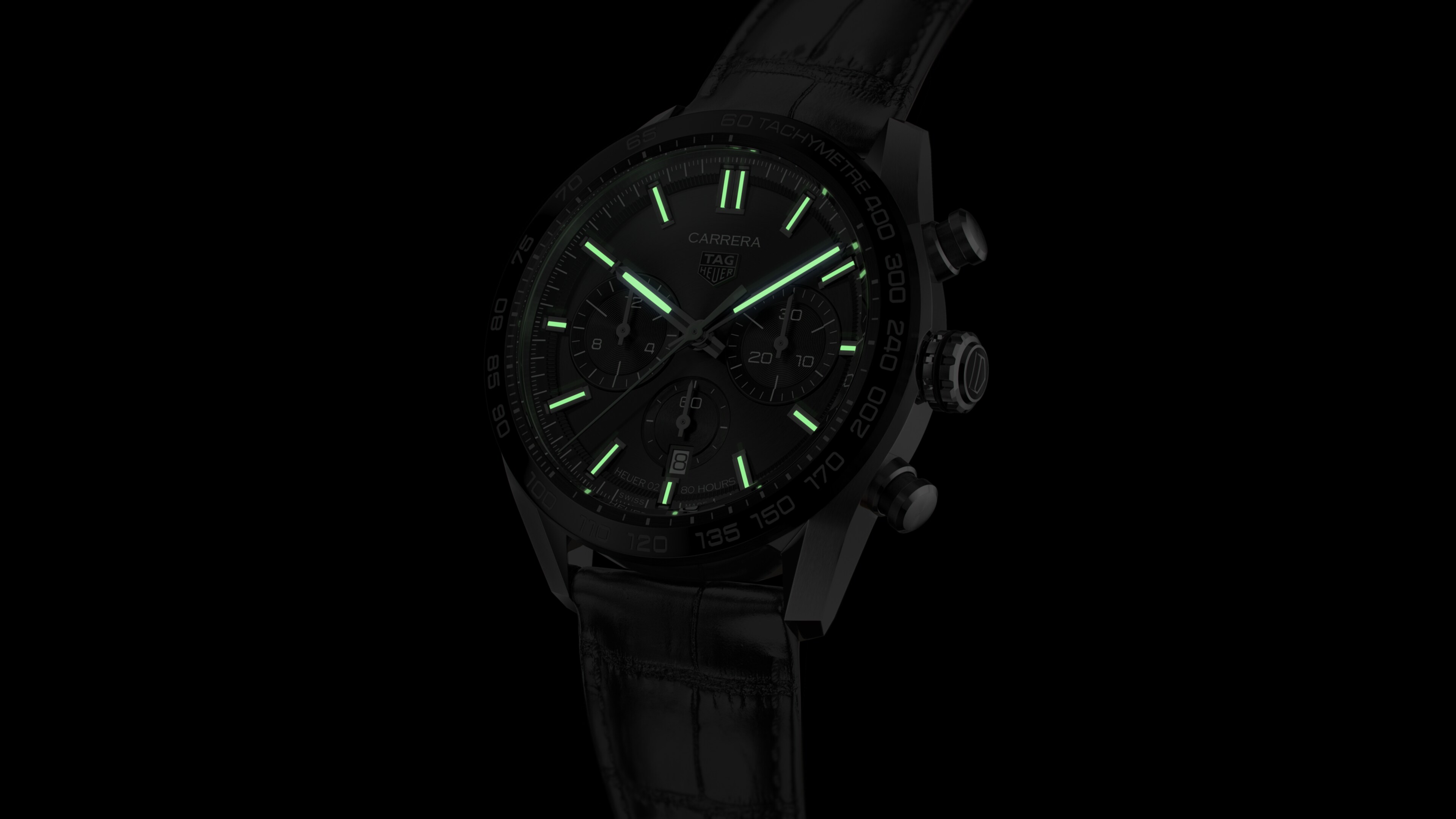 Inside beats our in-house Heuer 02 movement, an automatic column-wheel chronograph movement — signatures of improved chronograph timekeeping and high-quality manufacture movements — with an 80-hour power reserve.