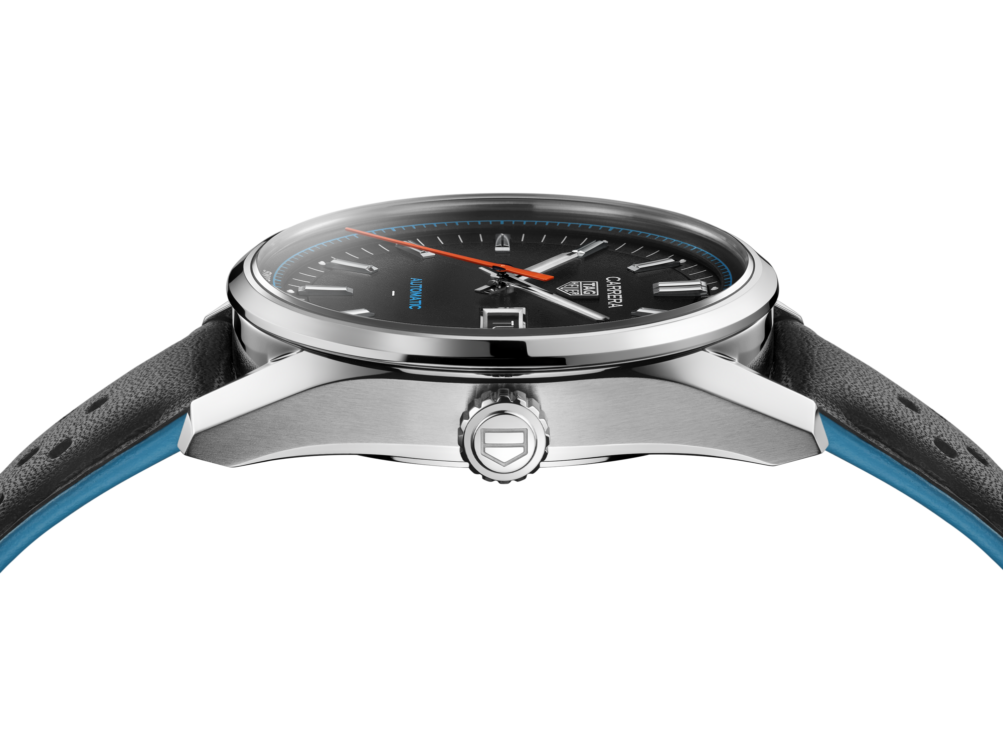 The black grained dial sports a unified look, with a slightly curved flange for depth and legibility. The dynamic red lacquered central hand brings a subtle, sporty touch to this refined watch. The caseback is engraved with a Victory Wreath symbol, cementing the TAG Heuer Carrera’s reputation as a token of luck.