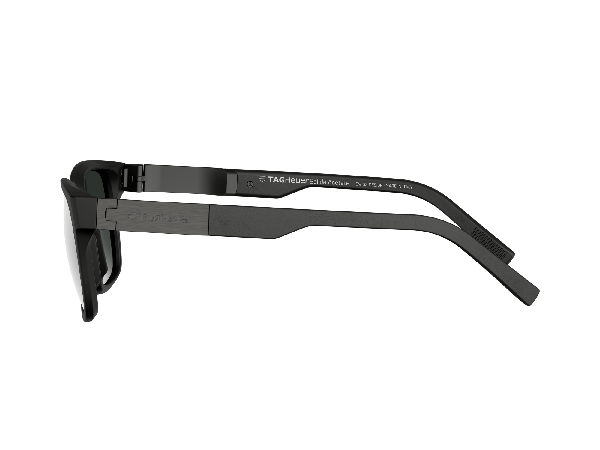 O acetato preto fosco na parte frontal adiciona profundidade visual e uma sensação mais suave e contemporânea ao design. É acompanhado por hastes em metal escovado, reforçando o equilíbrio entre os materiais. Hastes em borracha preta fosca combinando com a armação garantem conforto e leveza, enquando as plaquetas em bio-nylon emborrachado oferecem segurança e ajuste prático.