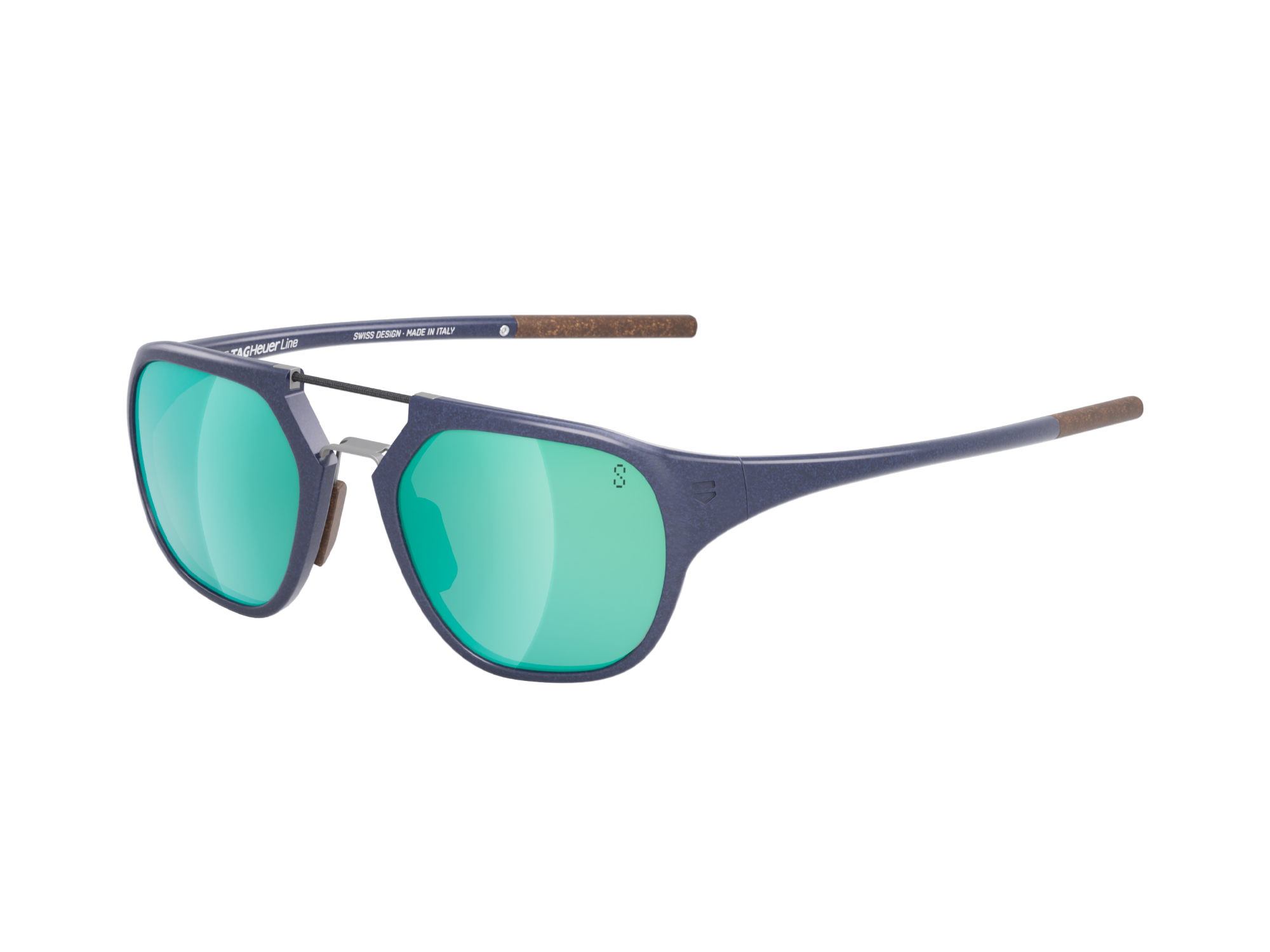 Lentes de bio-nylon cinza-claro com reflexo na cor Boreal Green, aprimoradas pela tecnologia TAG Heuer SPECTA, proporcionam proteção ideal e visão nítida em qualquer ambiente.