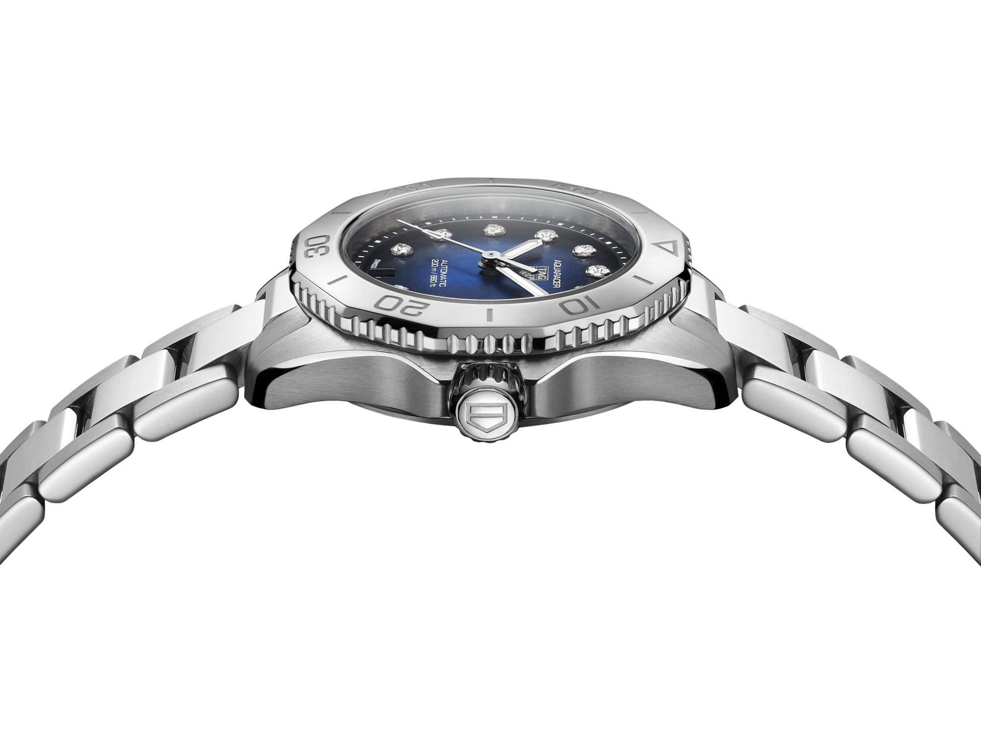 A ergonomia e os acabamentos elegantes da caixa em aço de 30 mm deste TAG Heuer Aquaracer o tornam um companheiro essencial em suas conquistas.