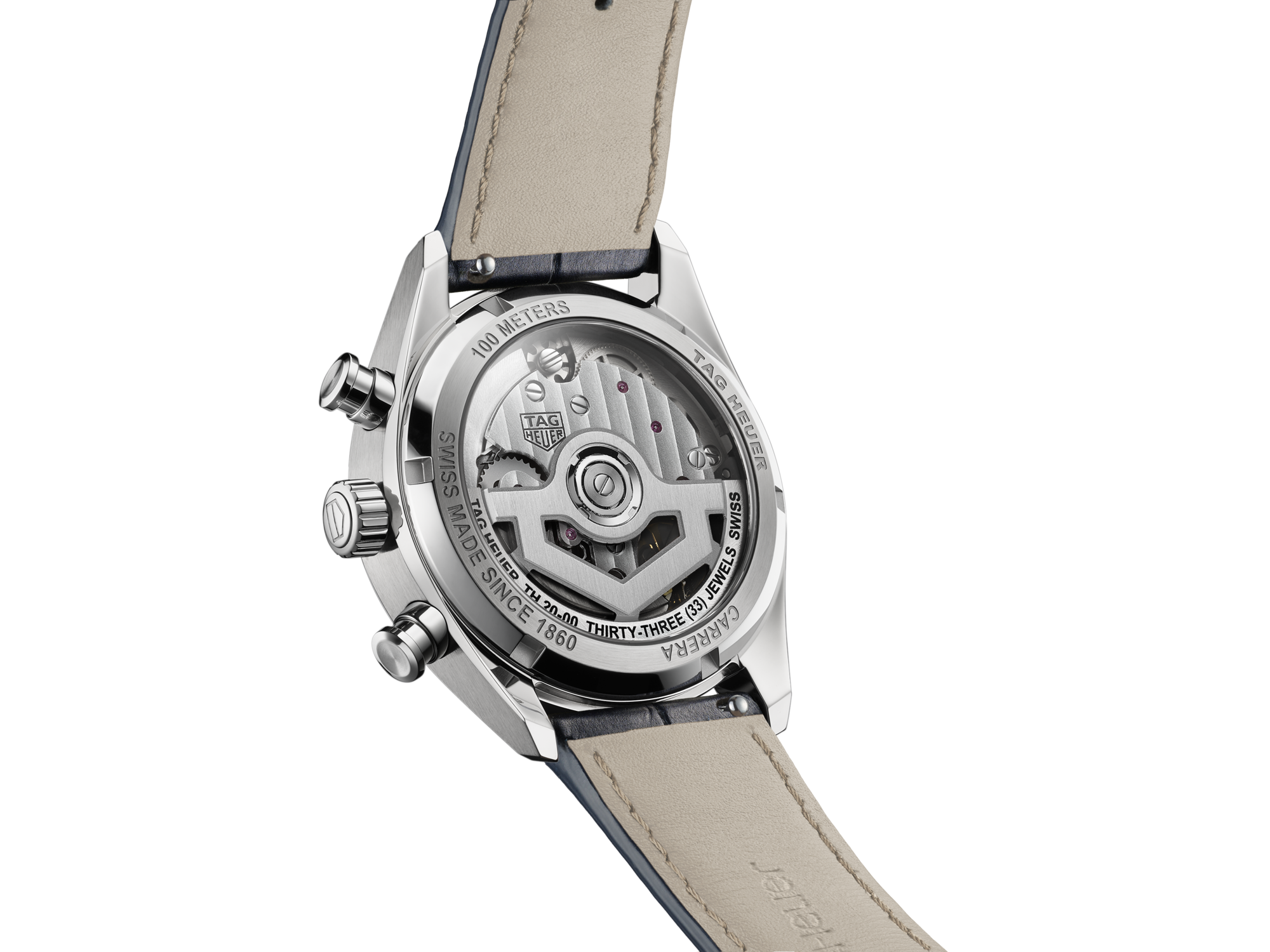 Em uma caixa em aço polido e finamente escovado sem bezel, o glassbox curvo em cristal de safira emoldura os detalhados contadores azuis em espiral com um toque moderno.