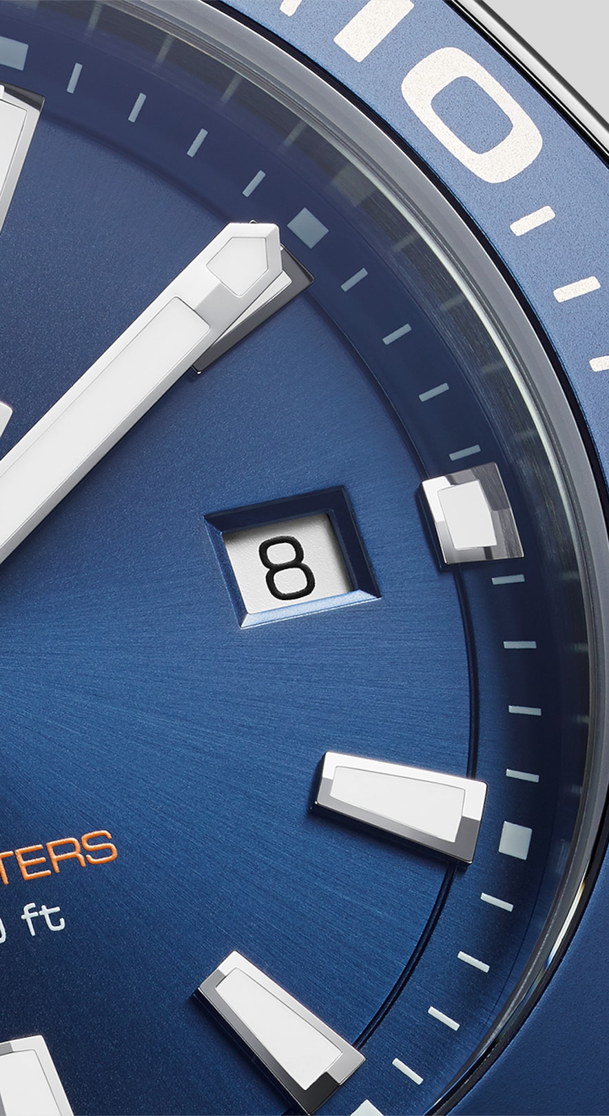 The dial is sparse, easy to read. The big, recognizable hands and facetted applied indexes are treated with white Super-LumiNova®. The watch is designed for at-a-glance reading nomatter the conditions or depths.