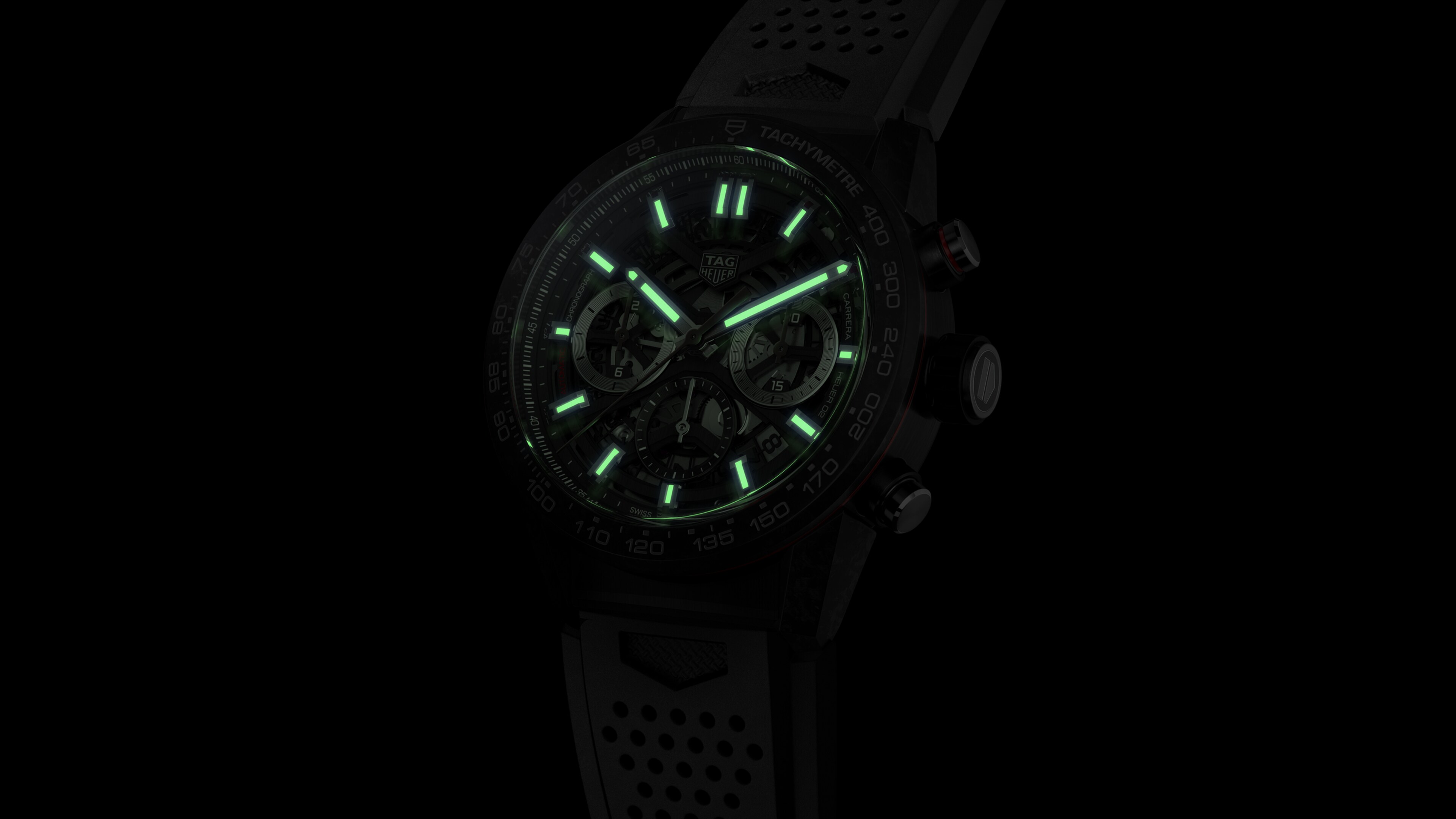 Automatic, 43 mm, Steel & carbon CBG2016.FT6143A black TAG Heuer Carrera built with the leading-edge materials of motor-sports: super-resistant carbon fiber for the tachymeter bezel and the iconic TAG Heuer Carrera lugs. Black PVD stainless steel is used for the 43mm case. Inside, the manufacture movement Heuer 02, with a stunning 80 hours power reserve.
