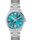 Cadran bleu turquoise brossé azuré en dégradé, avec des détails argentés rhodiés pour une élégance et une lisibilité ultimes. Le guichet de date est anglé à 6 heures, tandis que les aiguilles des heures et des minutes sont revêtues de SuperLumiNova® blanc pour une touche supplémentaire de charme.