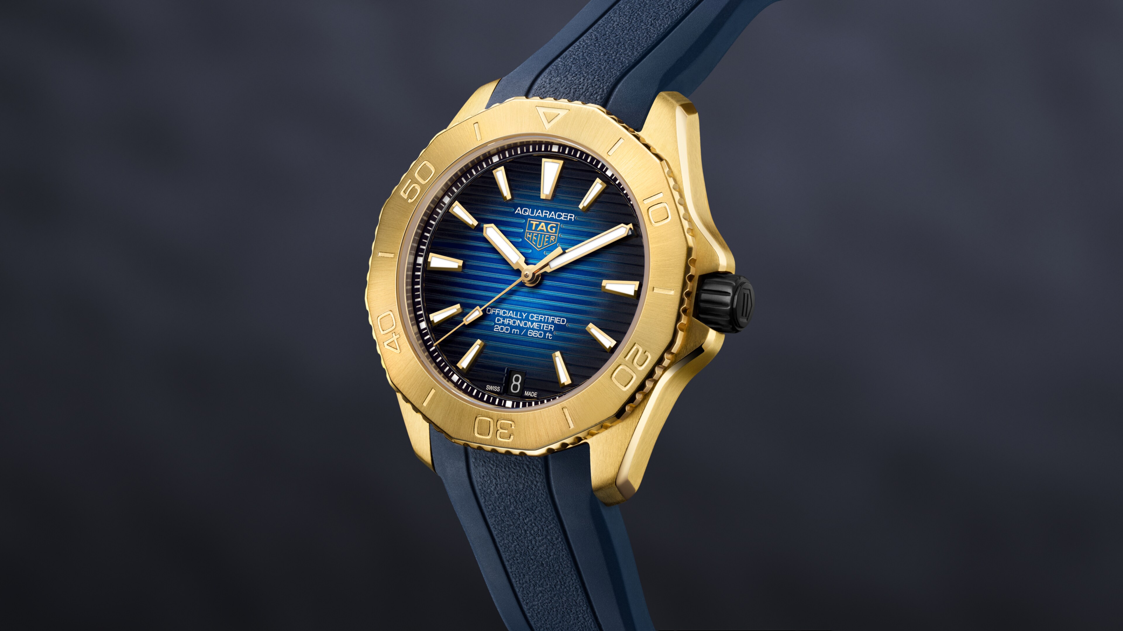 Automatik, 40 mm, Gold 3N WBP5152.FT6210Diese TAG Heuer Aquaracer aus massivem 18 K Gelbgold (3N) ist ein luxuriöses Statement, das auch extremen Bedingungen mit absoluter Eleganz standhält. Dank des brandneuen Uhrwerks Calibre TH31-00 ist dieser Zeitmesser besonders widerstandsfähig und leistungsstark und allen Lebenslagen gewachsen.