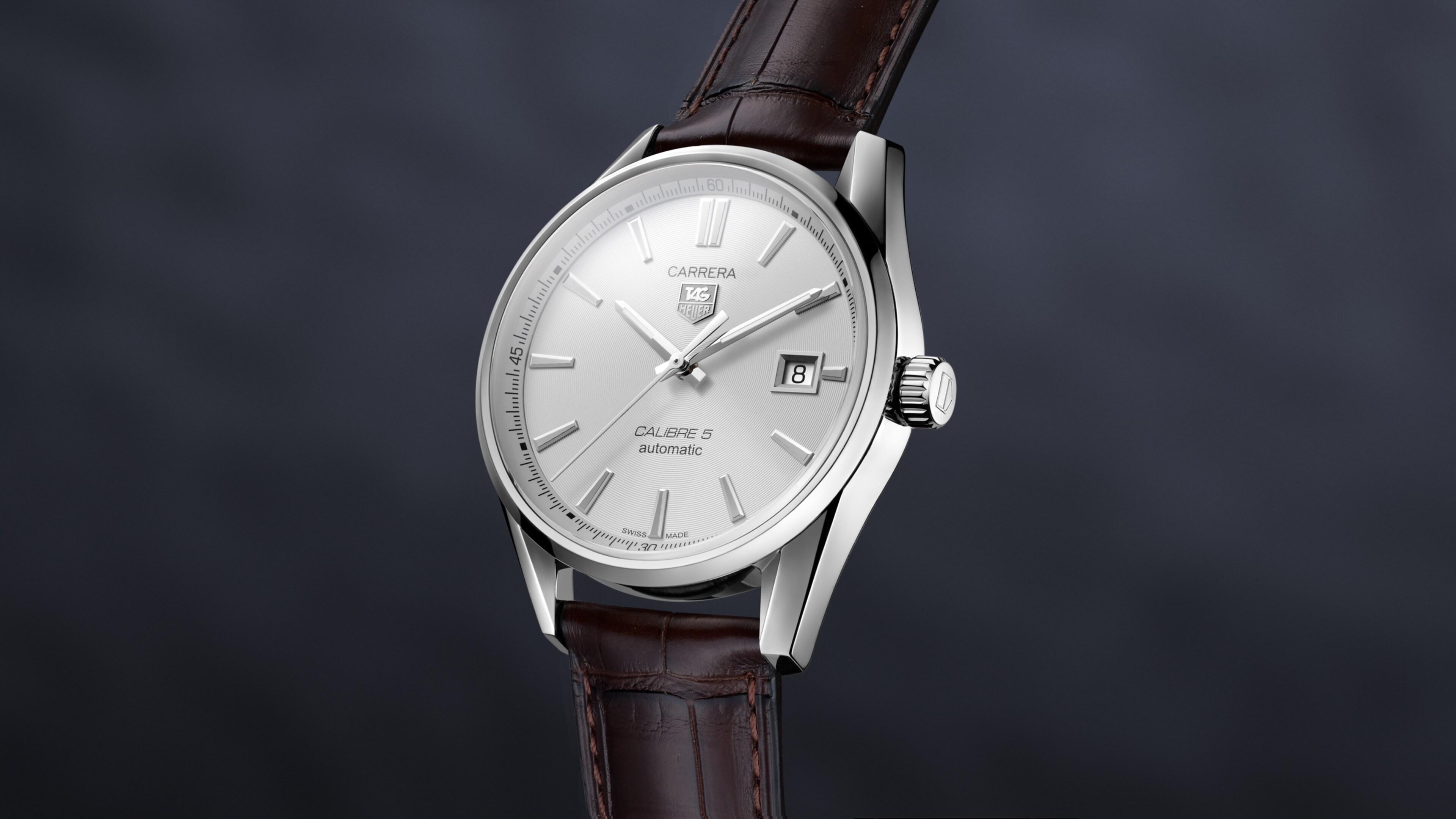 Automatik, 39 mm, Edelstahl WAR211B.FC6181Eine elegante Drei-Zeiger-Uhr mit weißem Zifferblatt, klassischen TAG Heuer Carrera-Bandanstößen und einem braunen Alligatorlederarmband. Im Inneren des 39mm-Gehäuses aus Edelstahl schlägt das robuste Automatikwerk Calibre 5.
