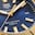 L'or jaune 18 carats habille les index et les aiguilles des heures, des minutes et du centre, la couronne et la lunette tournante unidirectionnelle.