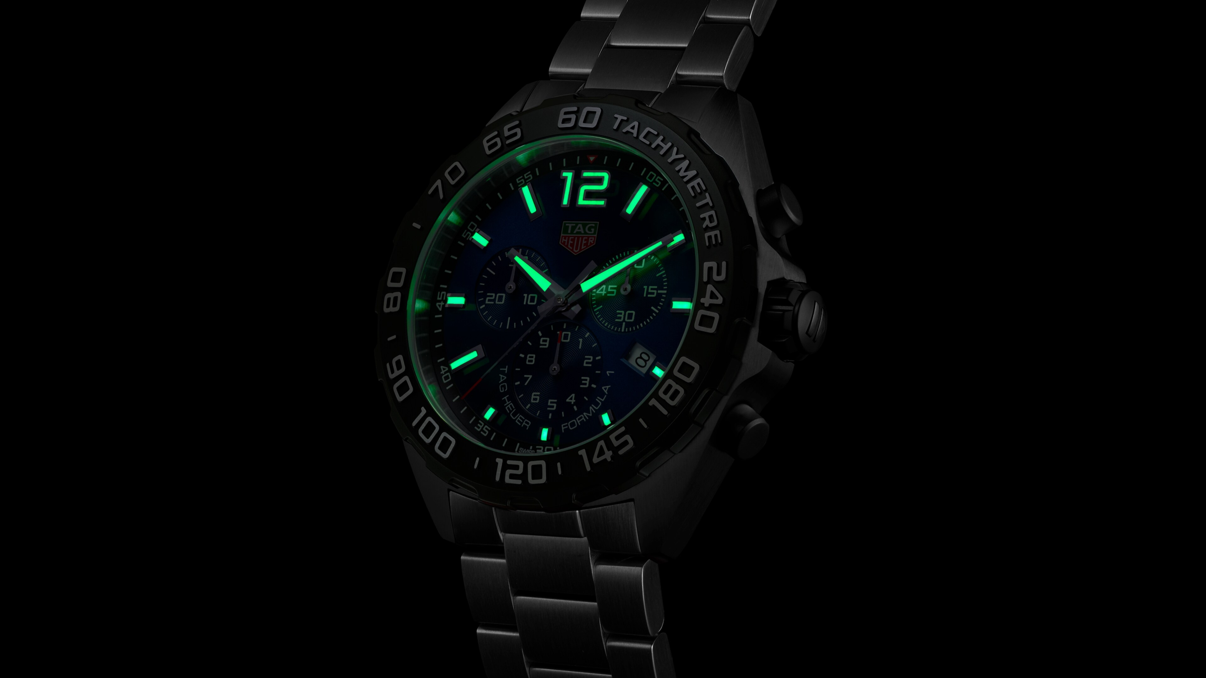 这款腕表搭载精准可靠的石英机芯,搭配三列式精钢表链,专为追求极速快步、竞速生活的人士设计。