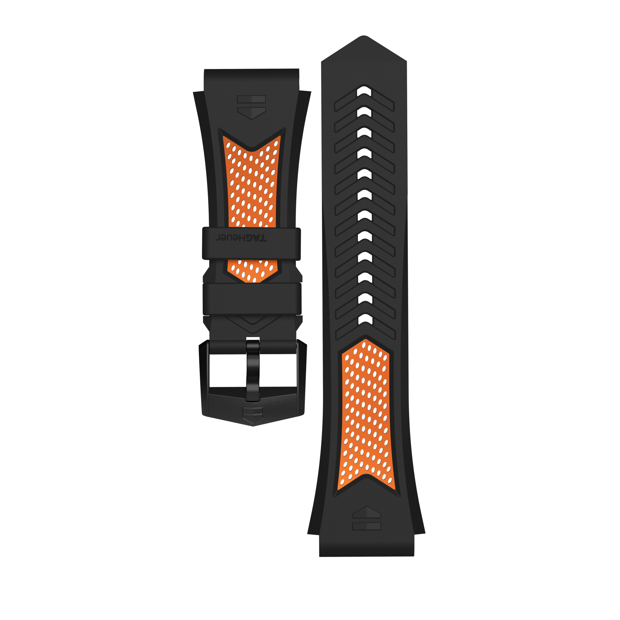 BT0747Track your sport session and push the boundaries with this high-end, ergonomic Orange and Black Sport Strap with a matching black steel pin buckle. Crafted for you, this luxury bracelet is suitable for any TAG Heuer Connected Calibre E4 Watch 45mm model. It is not compatible with previous versions of Connected watches.
