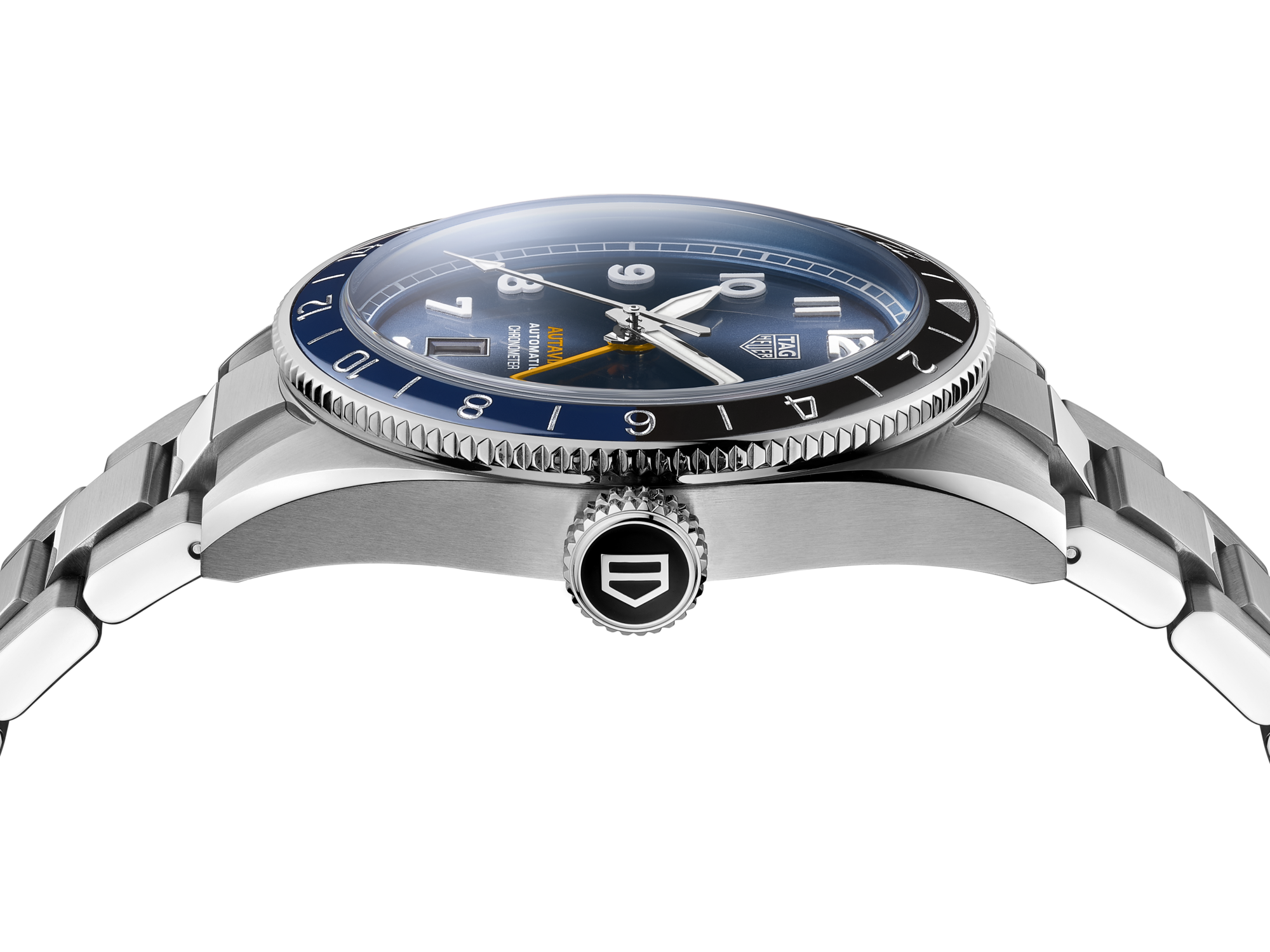 Powered by the COSC Calibre 7, and adorned with a classic blue and black ceramic 24-hour scale bidirectional bezel, this GMT watch is ready to take the plunge.