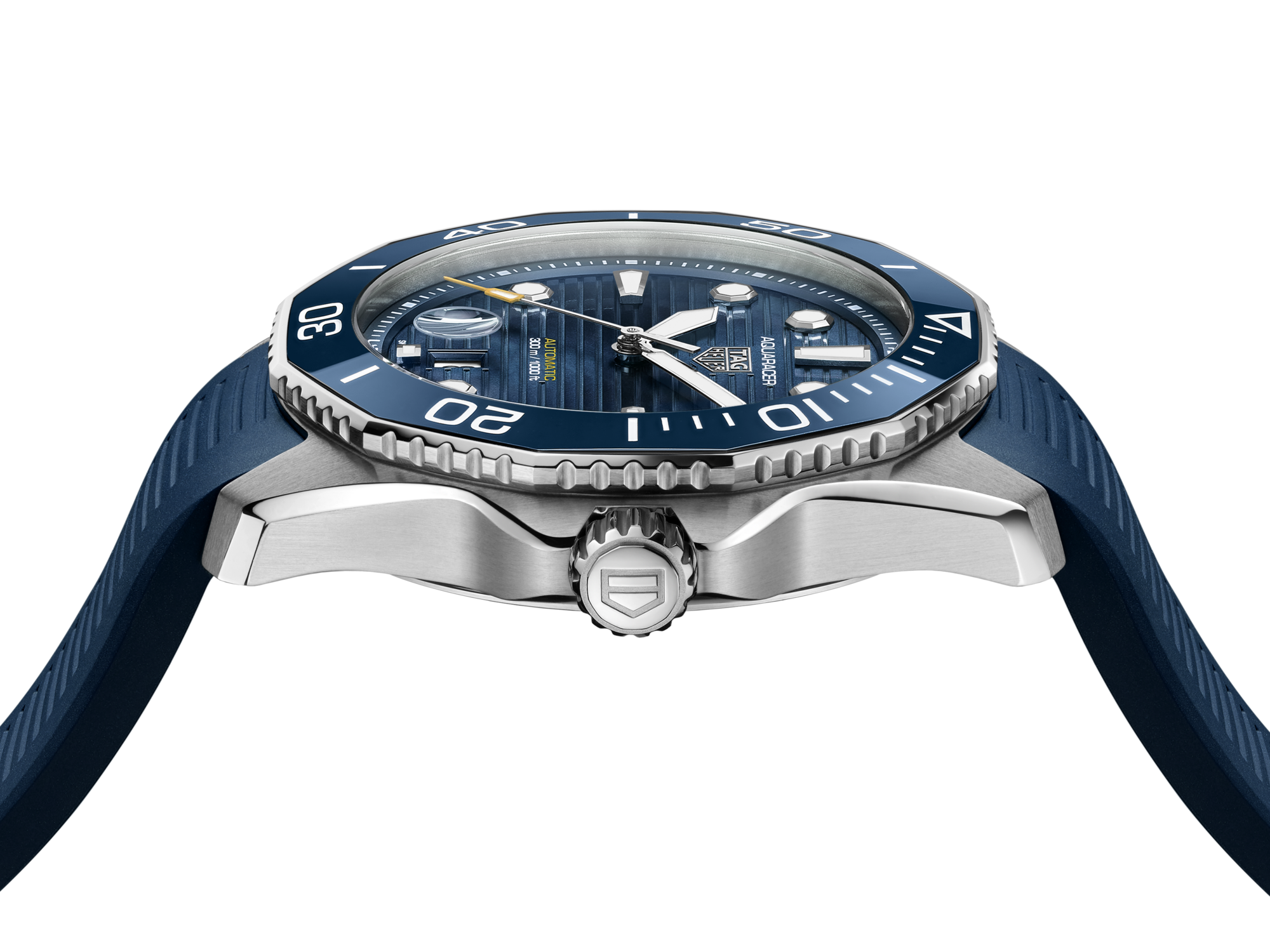 Automatic, 43 mm, Steel WBP201B.FT6198A deep-sea diving companion. Driven by the automatic Calibre 5, the new TAG Heuer Aquaracer is engineered for performance. The vibrant blue sunray dial perfectly matches the blue rubber strap, with fine adjustment offering extreme comfort.