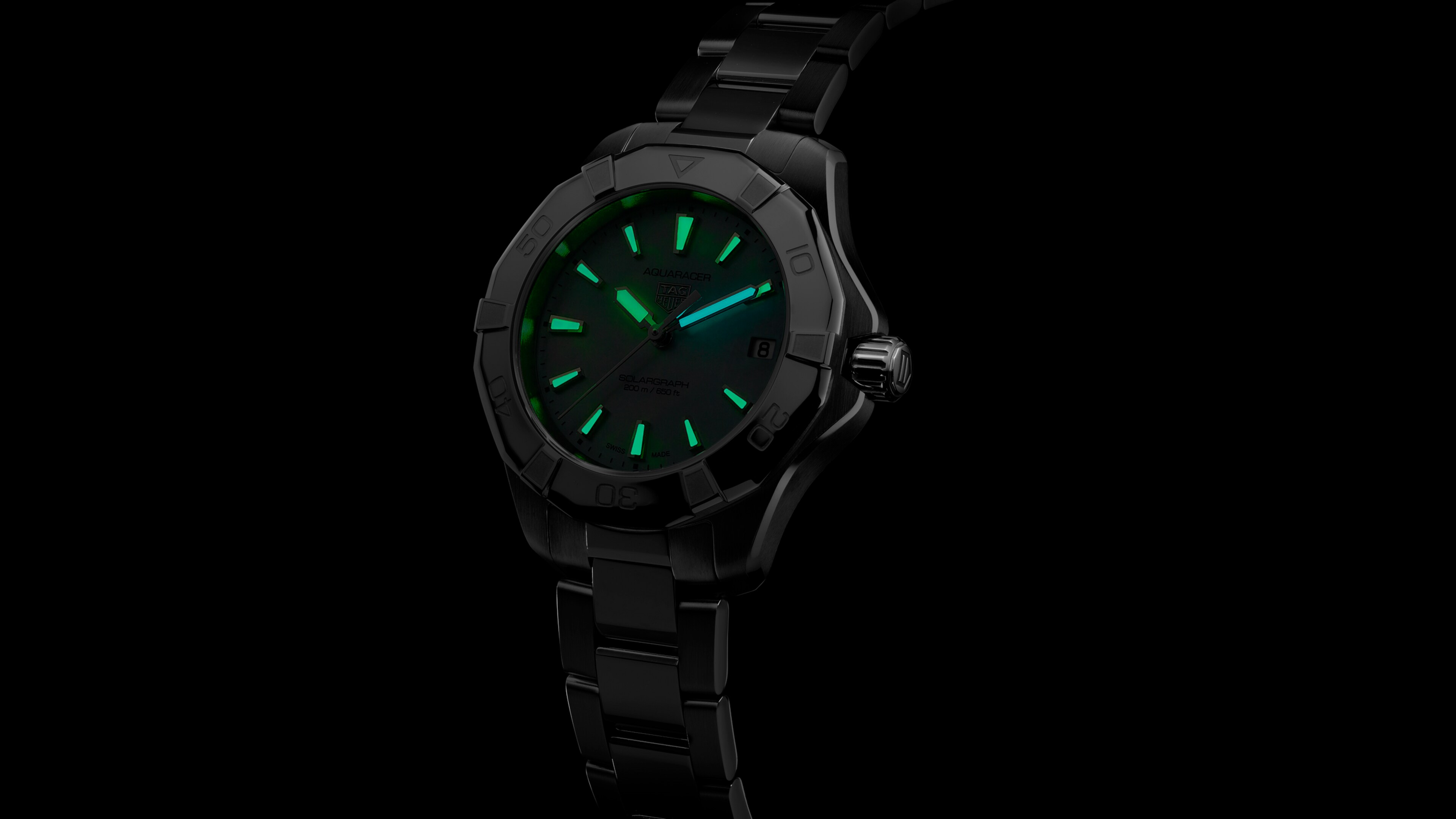 閃亮的珍珠母貝錶面設有覆以白色Super-Luminova®夜光塗層的指針和刻度,即使在極為黑暗的環境下仍然能夠清晰讀時。