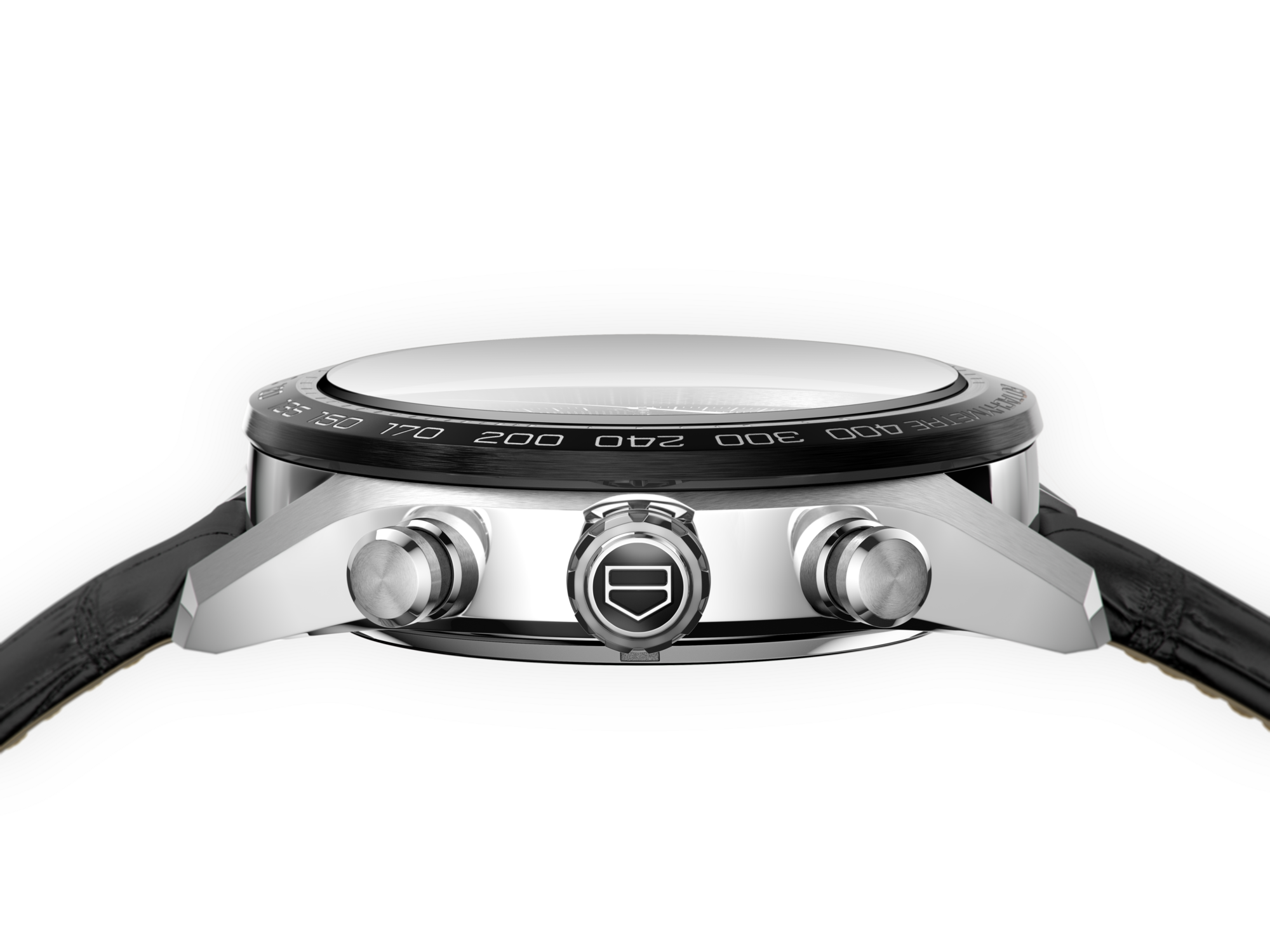 Featuring a striking black ceramic bezel and matching steel crown and pushers partially coated with black PVD, this knock-out timepiece now updated with an elegant black leather strap is exclusively available to purchase online on TAG Heuer UK website.