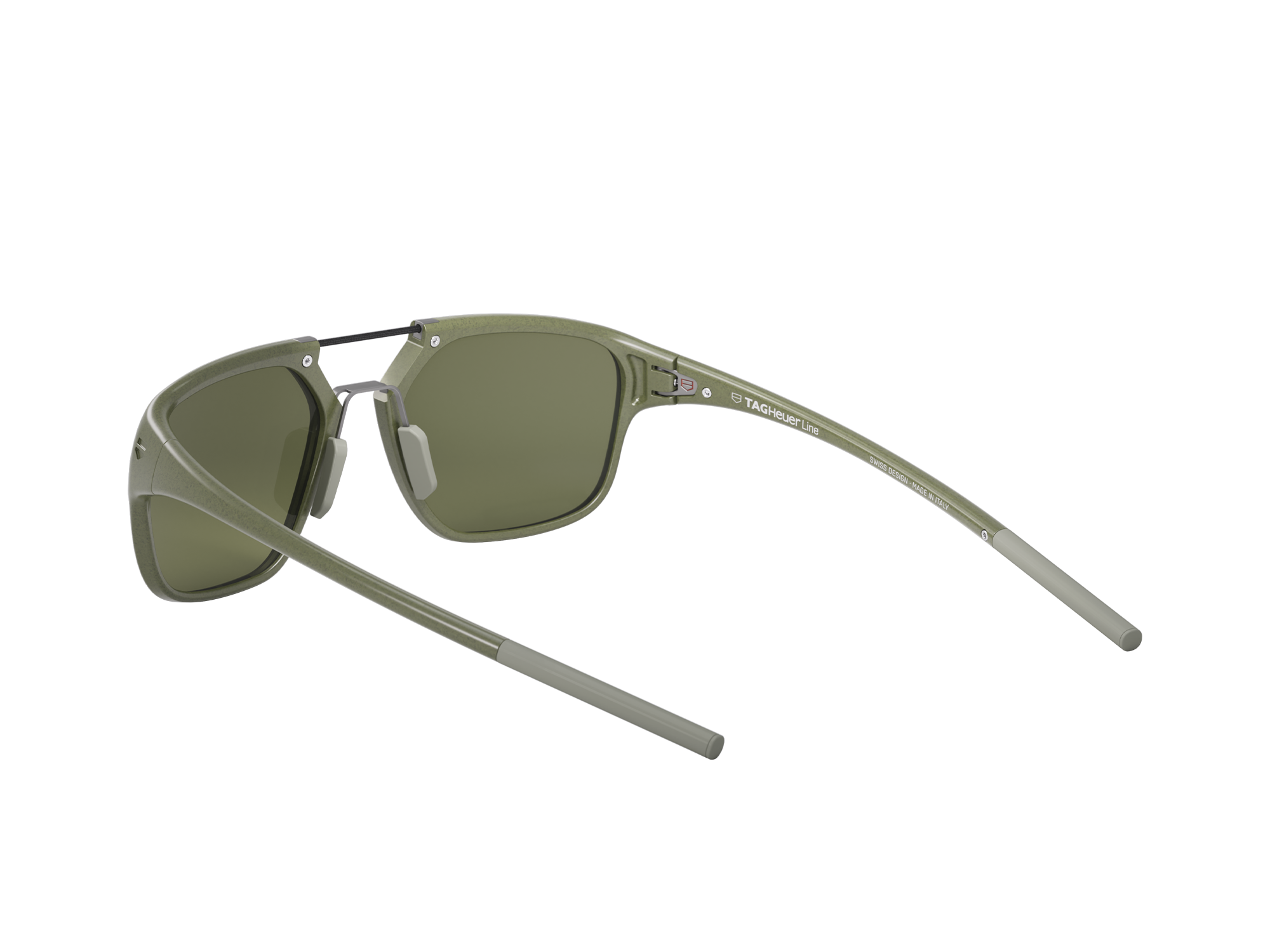 Die polarisierten Gläser aus Bio-Nylon in Sage Green mit Base 4-Beschichtung sind mit der TAG Heuer SPECTA-Technologie ausgestattet und bieten eine klare, geschützte Sicht. Ein wahres Statement in Sachen Eleganz und Funktion.