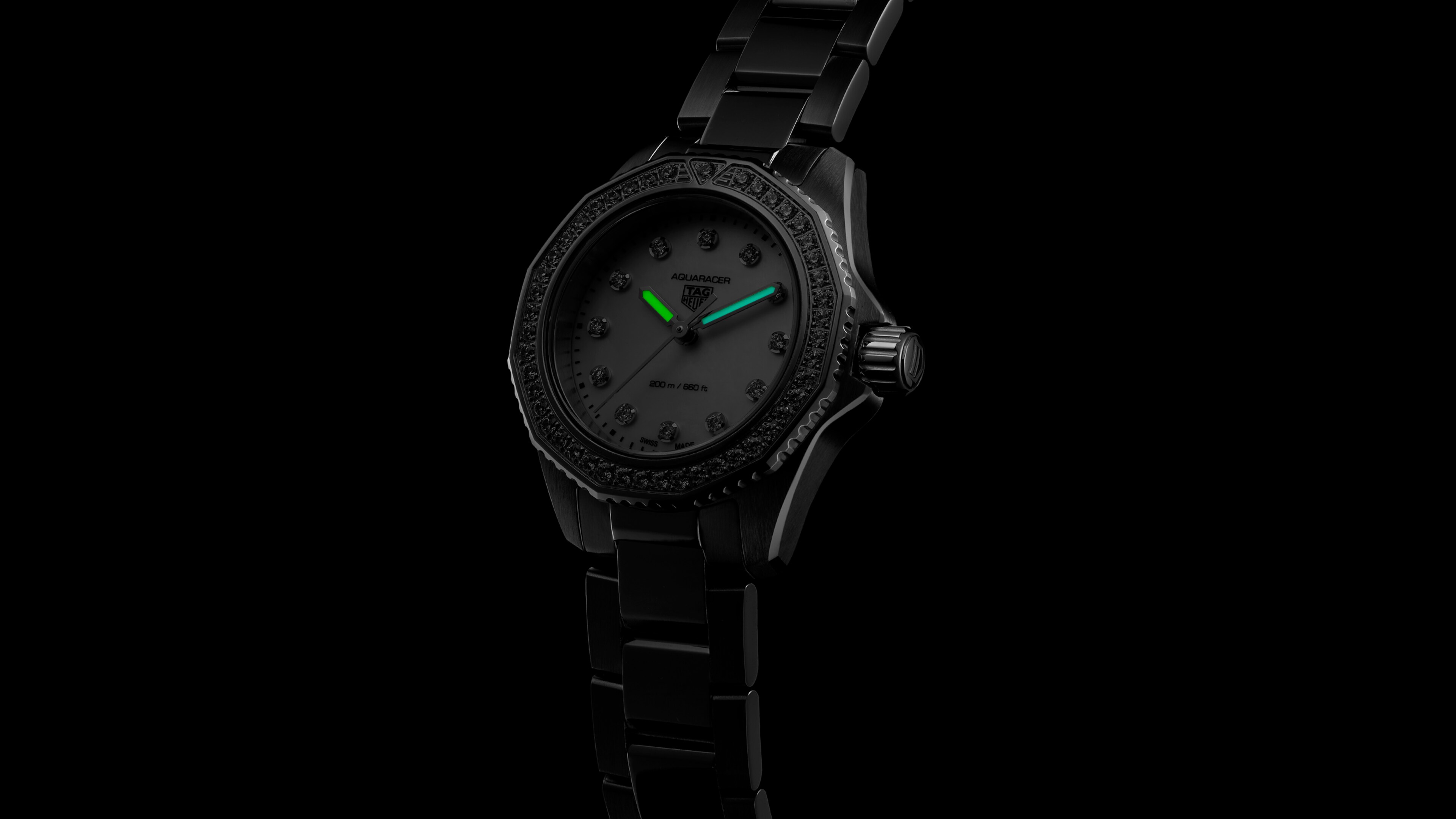 Quartz, 30 mm, Steel WBP1417.BA0622Decked out with a VS diamond-set bezel and dial, this TAG Heuer Aquaracer combines absolute elegance with extreme robustness. With a 30mm steel case and reliable quartz movement, this versatile tool watch is the perfect everyday companion.