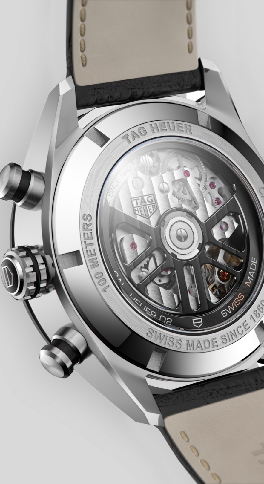 Inside beats our in-house Heuer 02 movement, an automatic column-wheel chronograph movement — signatures of improved chronograph timekeeping and high-quality manufacture movements — with an 80-hour power reserve.