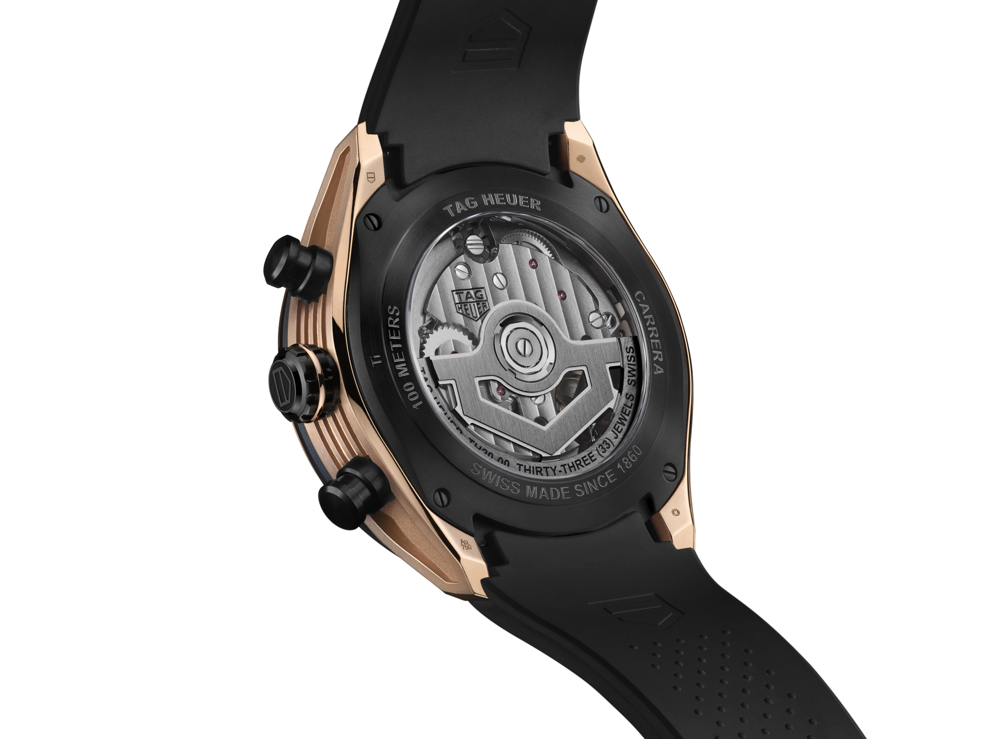 At its core, visible through the sapphire titanium caseback coated with black DLC, the ultra-reliable TH20-00 in-house movement with NAC finishing and black detailing reflects the watch's racing heritage and technical prowess.