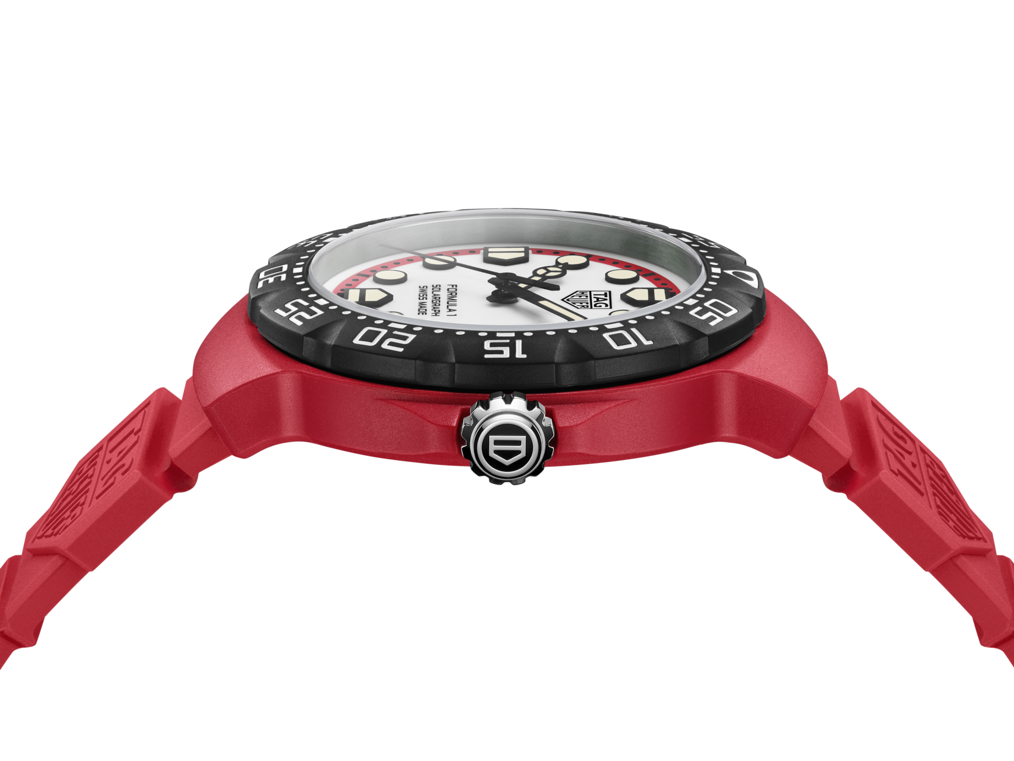 The TAG Heuer Formula 1 Solargraph (38mm) delivers a bold, eye-catching look with its red TH-Polylight case. Designed for daring urban adventures, this exclusive timepiece blends vibrant colors and cutting-edge solar-powered technology, making it a standout in the TAG Heuer Formula 1 collection.