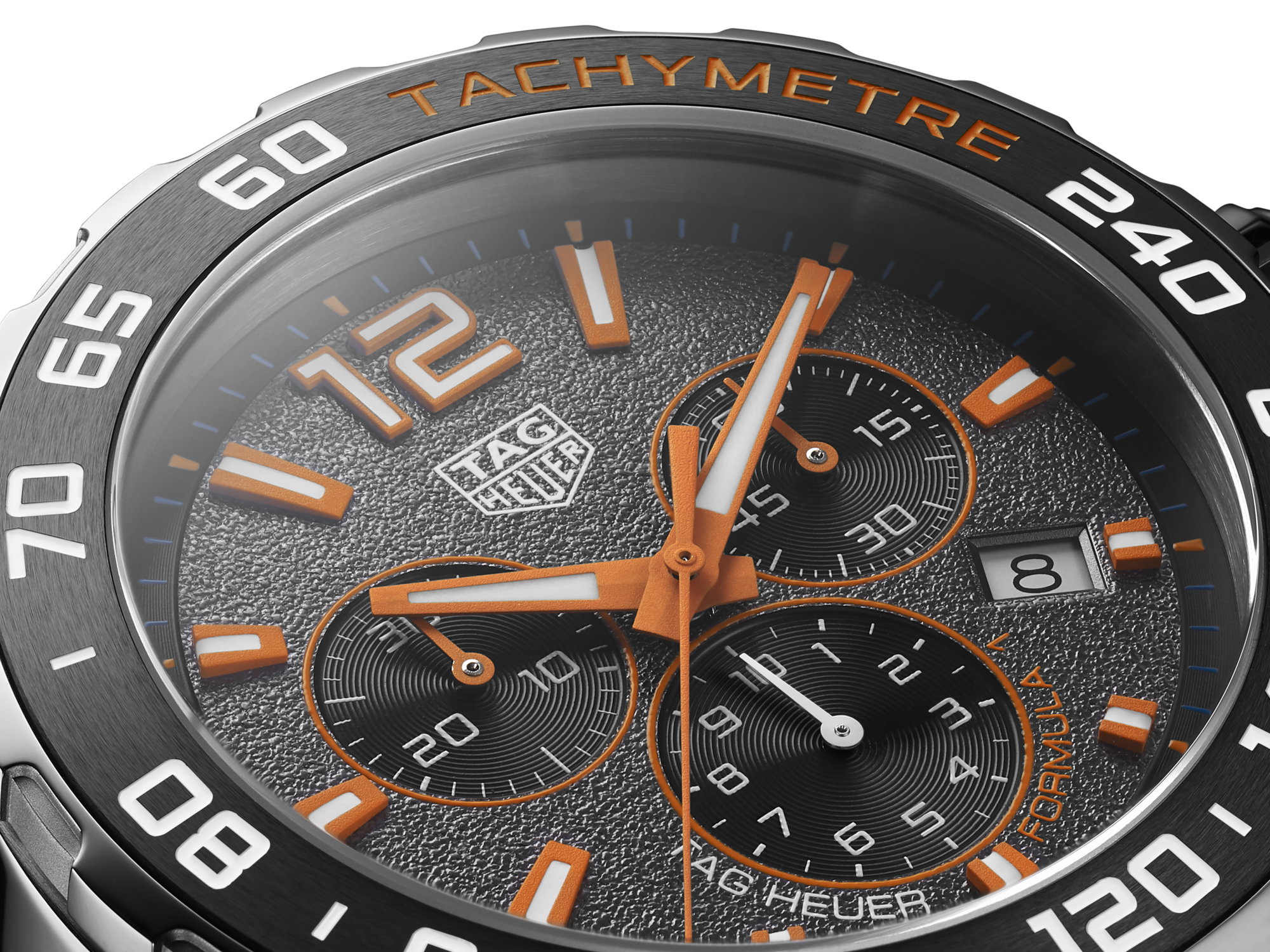 Unmatched legibility through the flat sapphire crystal on the racetrack thanks to the Super-LumiNova® on the sturdy hands and applied hour markers.