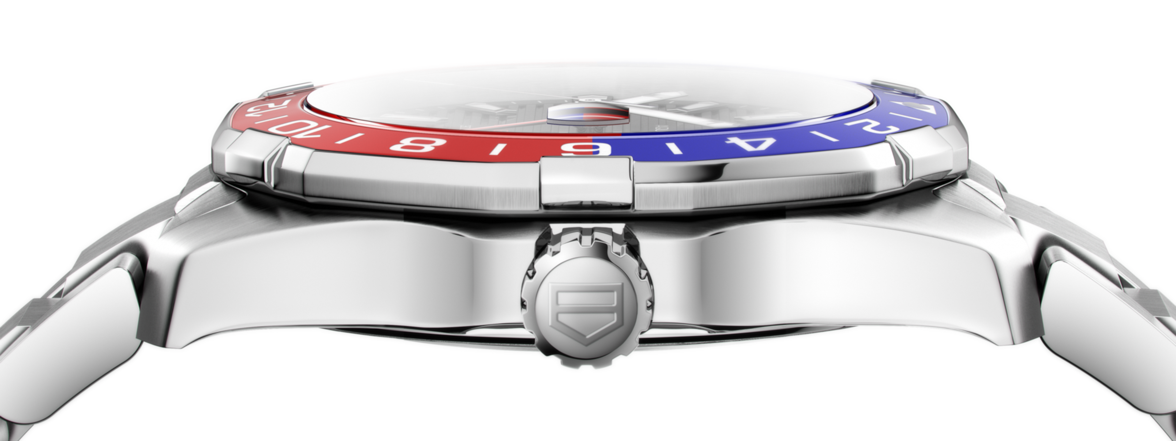 Automatic, 43 mm, Steel WAY201F.BA0927A Calibre 7 GMT powered Aquaracer with an expansive 43mm case and a two-color GMT function bezel for additional time zones. The dial’s distinctive horizontal streak effect and special luminescence markers on the hands and indexes make reading easy in dim light or under water.