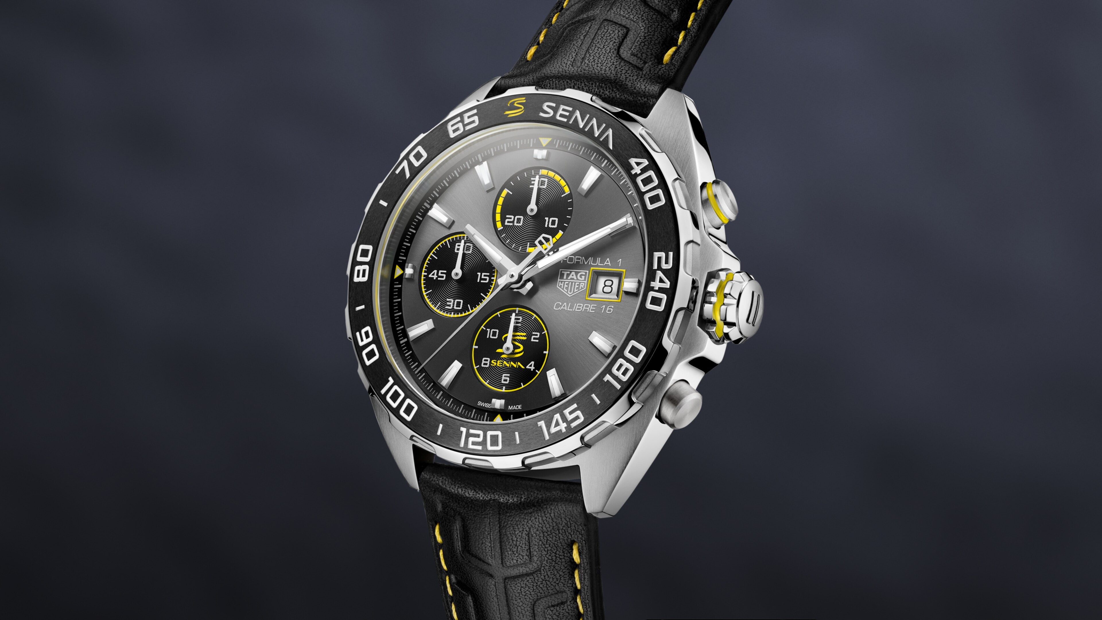 This TAG Heuer Formula 1 adorns the yellow and black, to pay tribune to Senna's color. The Ceramic bezel uses a dedicated and exclusive tachymeter scale, for a modern setting, to celebrate our partnership with the Senna Foundation.