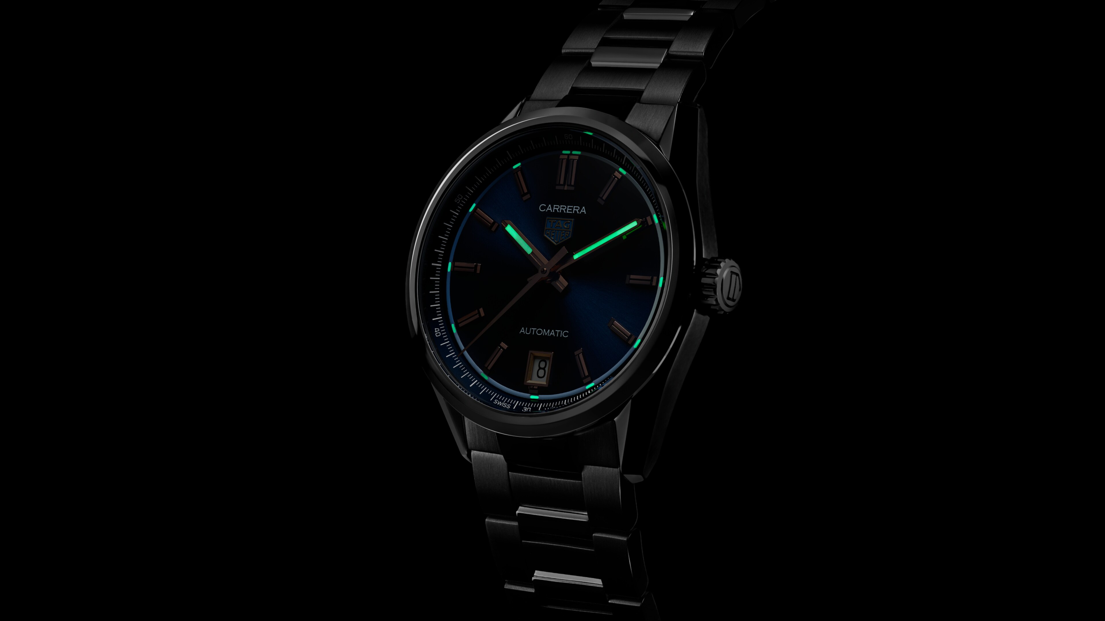 La fina caja de acero de 36 mm alberga el movimiento TAG Heuer Calibre 7 Automático, con una reserva de marcha de 56 horas. Estanco hasta 50 metros.