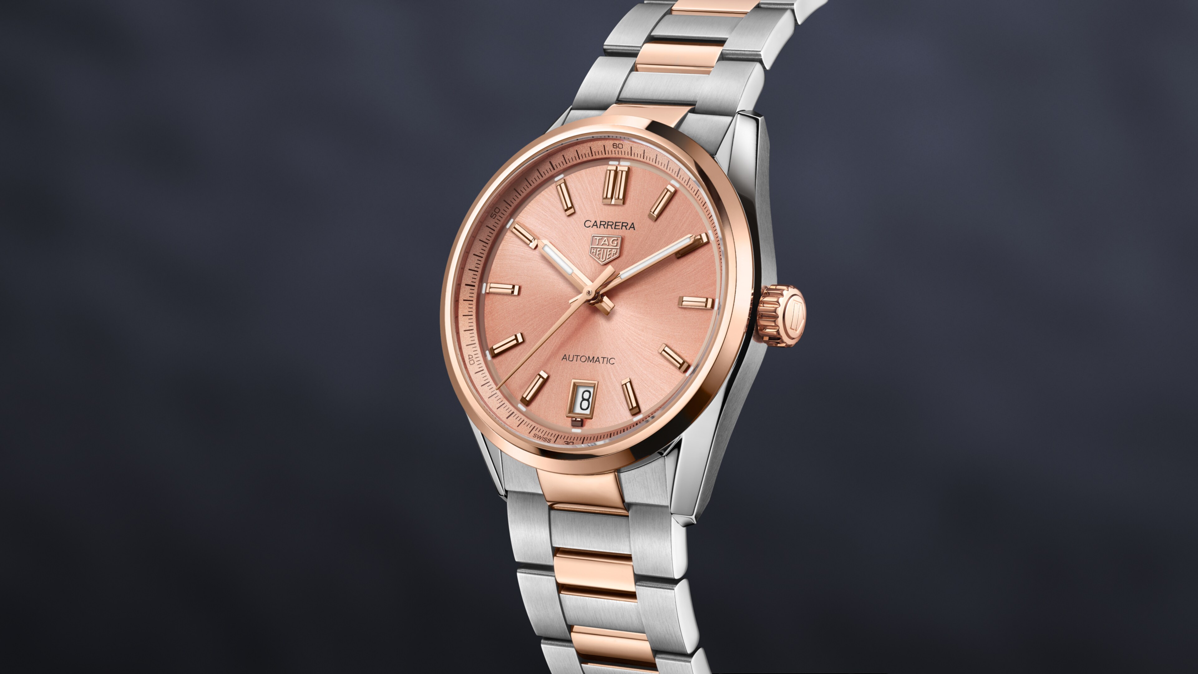El bisel de oro rosa macizo (18 qt 5N) y la corona a juego destacan con audacia sobre la caja de acero satinado y pulido, testimonio del compromiso de TAG Heuer con la precisión y el encanto.