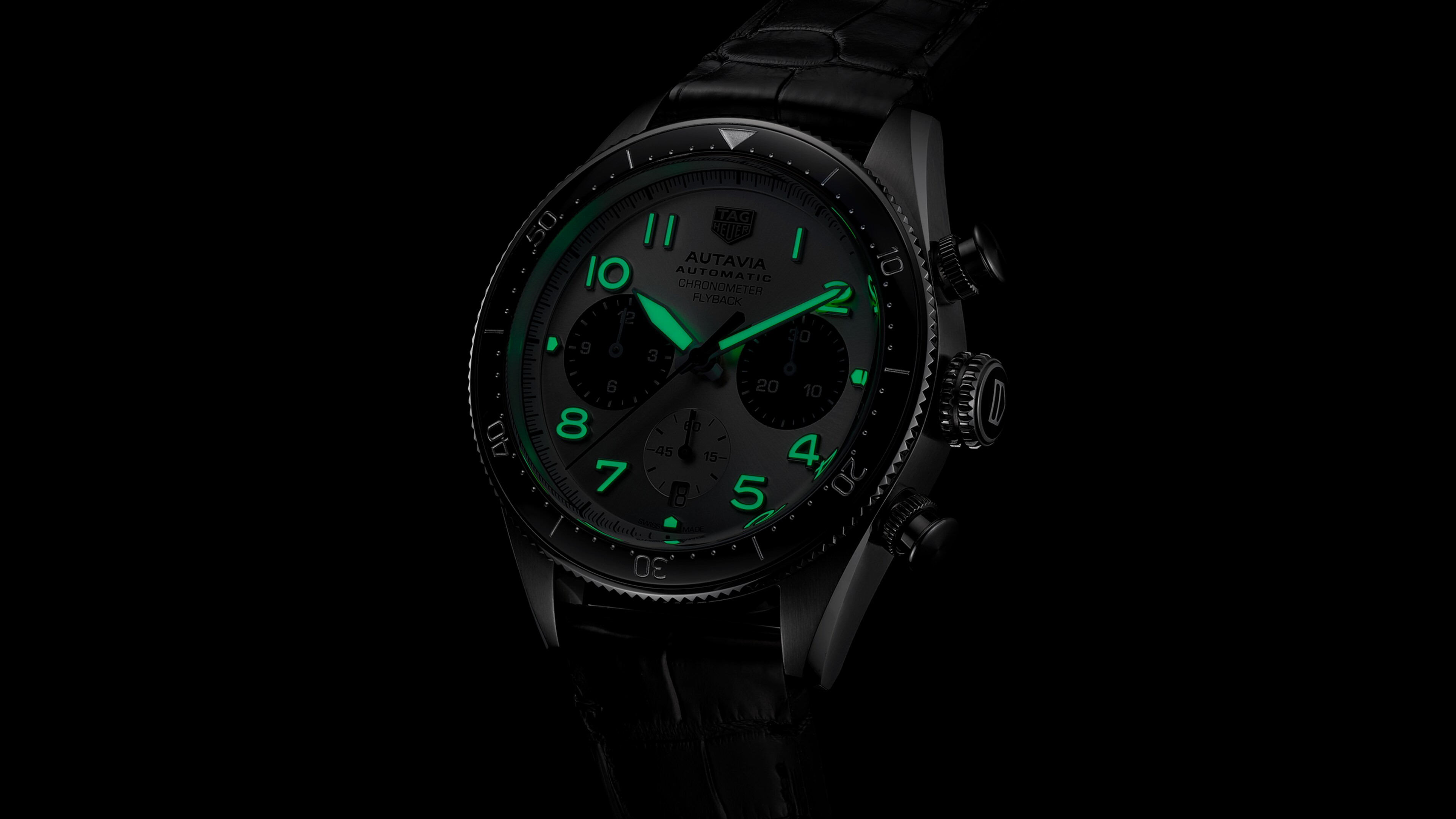 Powered by the manufacture Calibre Heuer02 COSC Flyback movement, the reinvented classic case reveals its details and intricacies through the clear caseback.