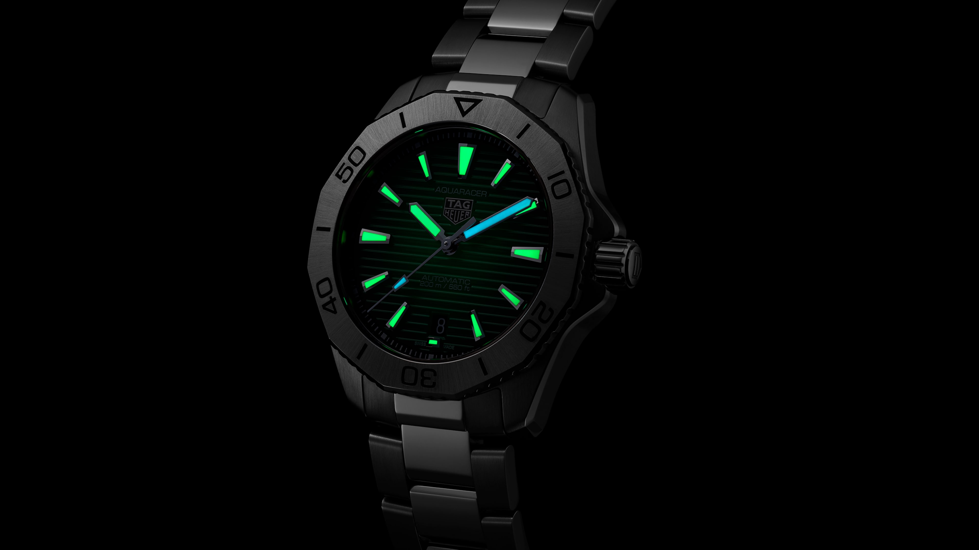 La esfera ahumada, de un verde intenso, como la selva tropical, cuenta con agujas y marcadores ultralegibles aplicados con Super-LumiNova® blanca. Listo para superar los límites.