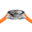 This 40mm connected watch features a finely brushed and polished steel case, a domed sapphire crystal with subtle grey and silver markings, and integrated steel pushers. The sleek design is further enhanced by the vibrant orange rubber strap.