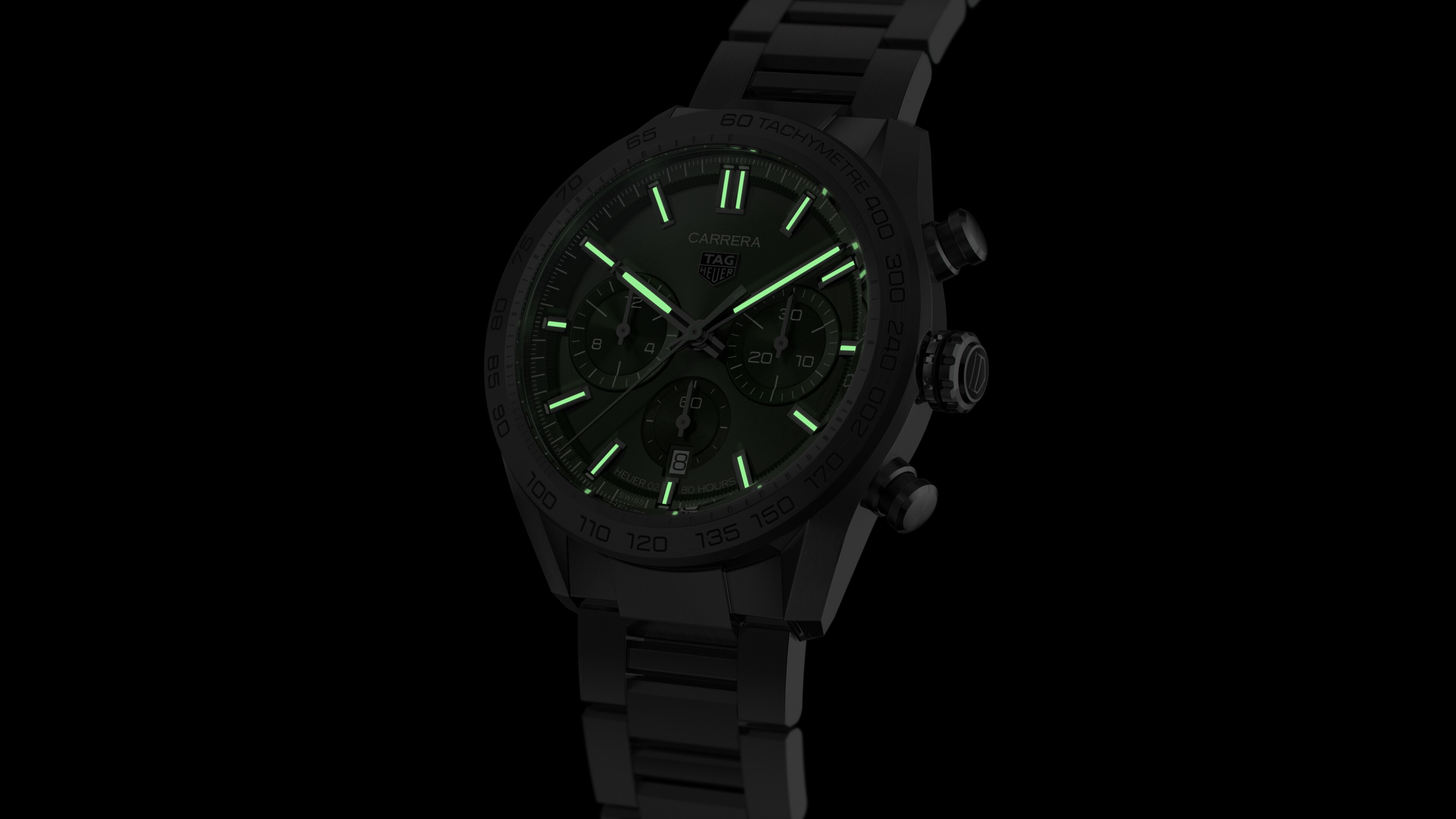 Powered by our in-house Heuer 02 movement, an automatic column-wheel chronograph movement – signatures of improved chronograph timekeeping and high-quality manufacture movements - with 80-hour power reserve.