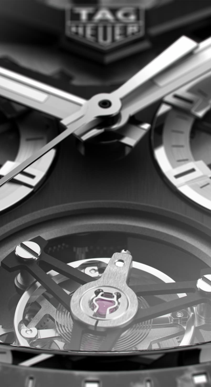 The COSC-certified Calibre HEUER 02 Tourbillon is visible through the sapphire case back and the open-worked dial. Gorgeous black finishing is applied to the tourbillon bridge and open-worked rotor.