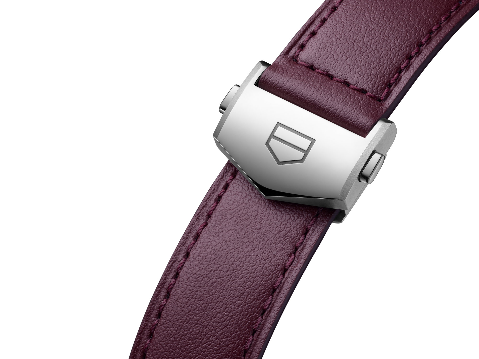 Transform your TAG Heuer Carrera 39mm with this matte burgundy smooth calfskin leather strap. Its deep, rich color, paired with a black lining and harmonious tone-on-tone stitching, creates a sense of refined elegance, while the robust stainless steel deployant buckle ensures a secure and prestigious finish. A self-removable attachment system enhances practicality and ease of use.