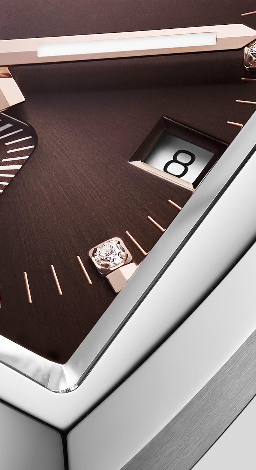 12 diamants brillent sur le cadran satiné soleillé. Les aiguilles, ainsi que les index des heures et des minutes polis, facettés et rhodiés sont plaqués d’or rose, tout comme le discret logo TAG Heuer.