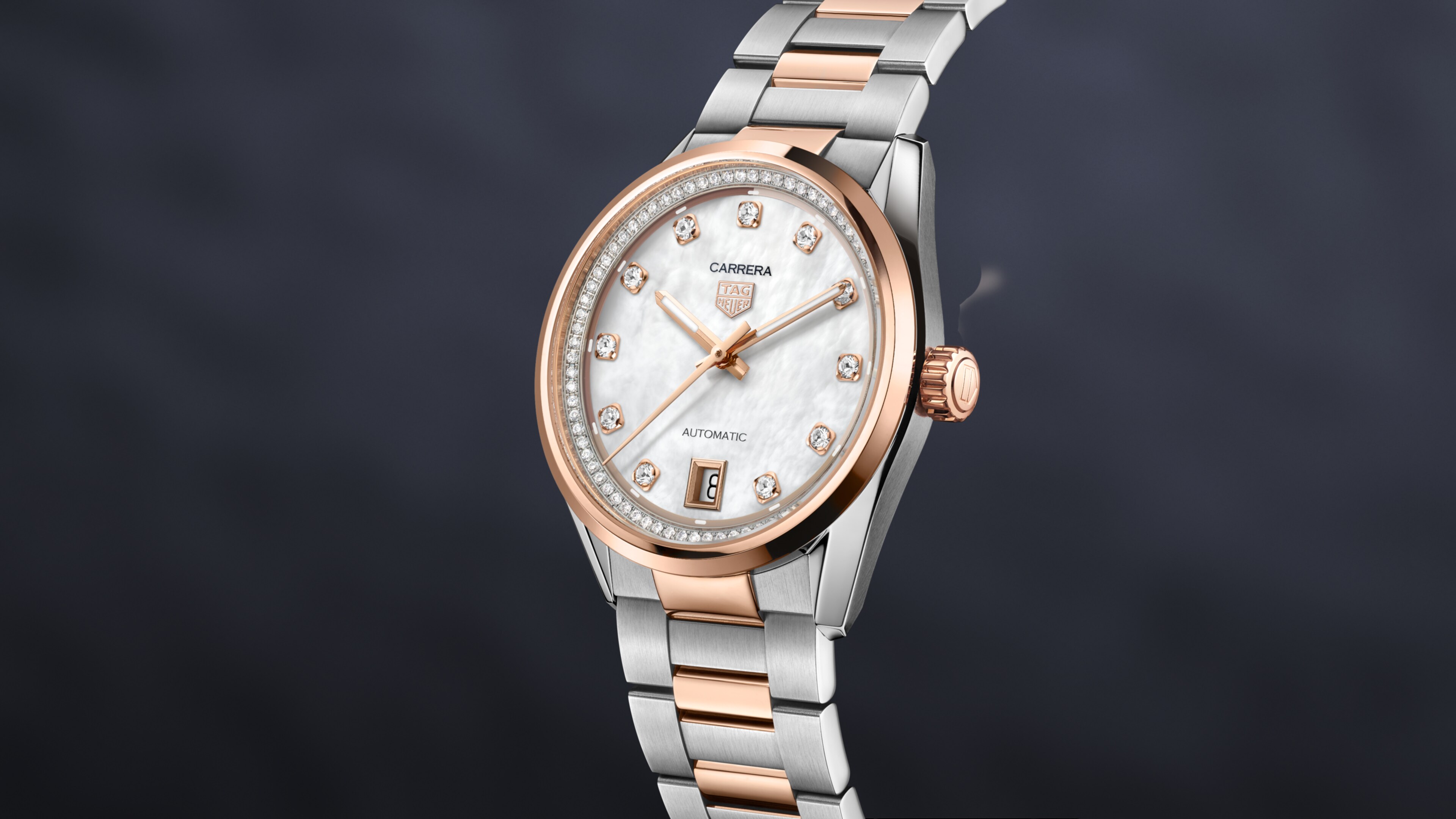 自动机芯, 36 mm, 精钢 WBN2351.BD0000这款36毫米泰格豪雅卡莱拉系列日历型腕表尽显精致优雅气质,珍珠母贝的虹彩与18K 5N玫瑰金的隽永奢华交相辉映,以经典优雅之姿重新诠释致敬卡莱拉系列的创作初心。