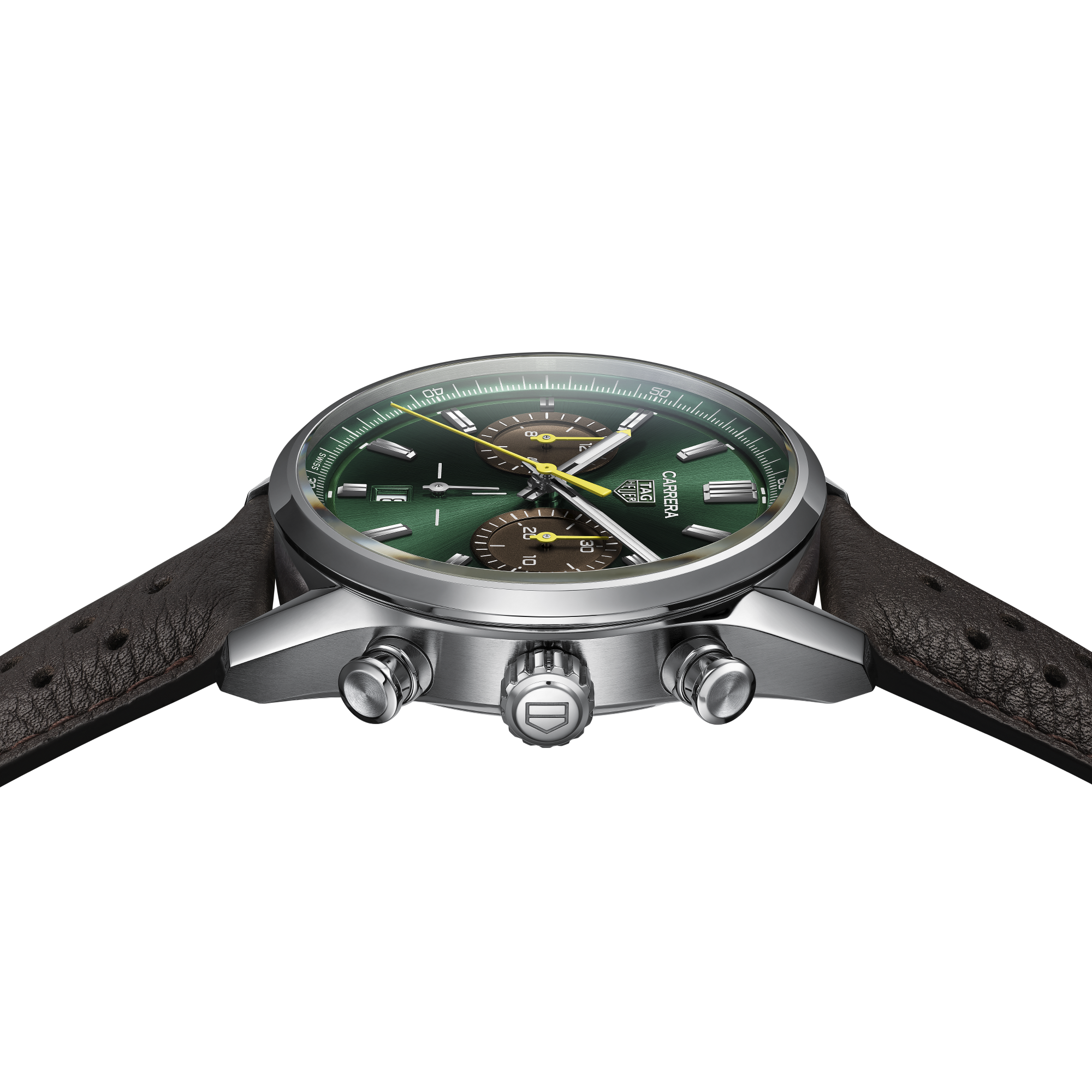 泰格豪雅卡莱拉系列限量版腕表仅发行600枚,邀您领略竞速精神。专为藏家打造,采用灵感源自赛车配色的绿色表盘,搭配奢华棕色皮革表带。这款标志性腕表巧妙融合优雅风范和速度传承。