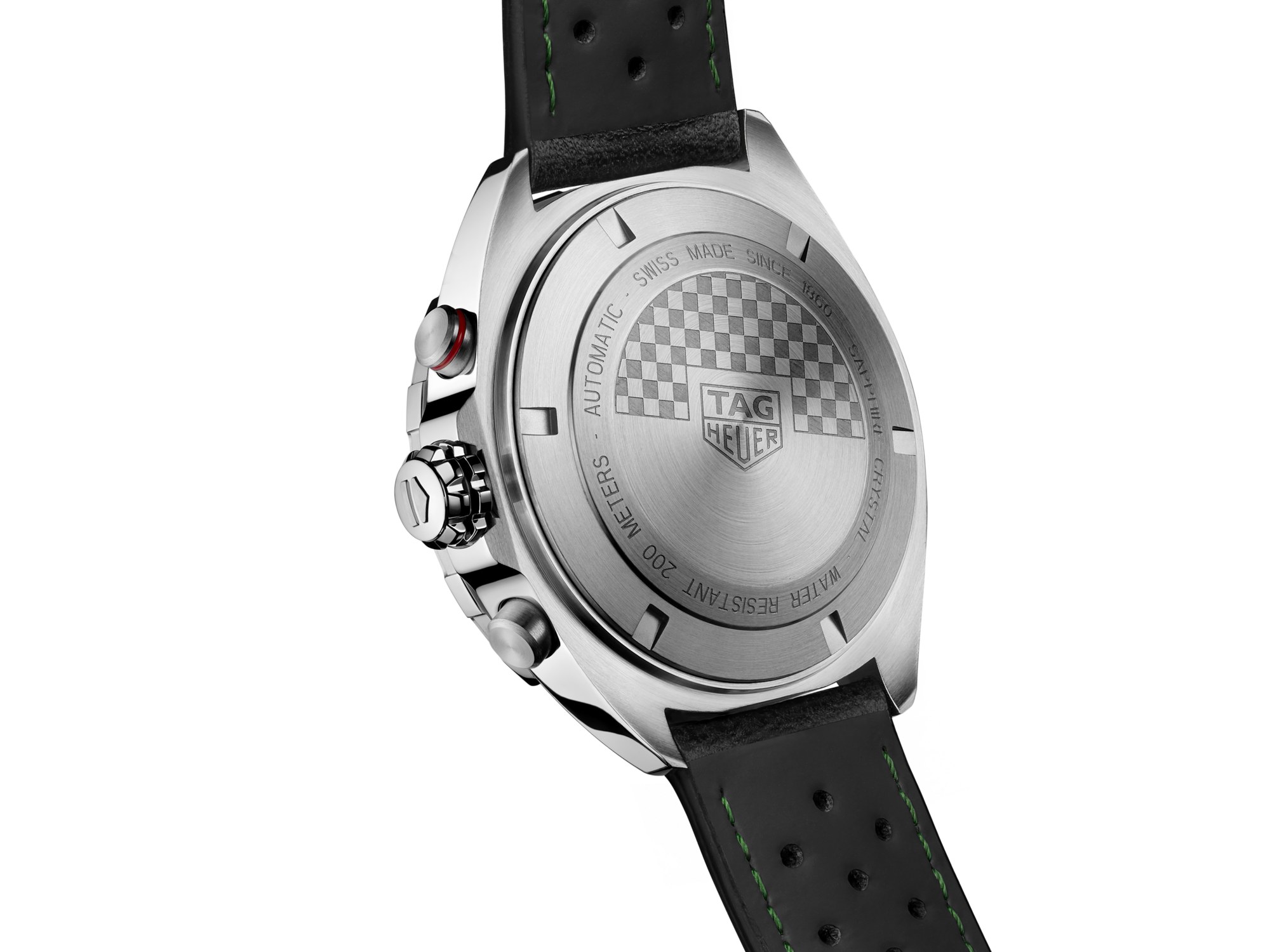 绿色表盘外观出众。 “赛车绿”可追溯至20世纪早期,当时赛车可通过其国别颜色进行识别。 自此,这种颜色便成为赛车运动的标志性颜色。