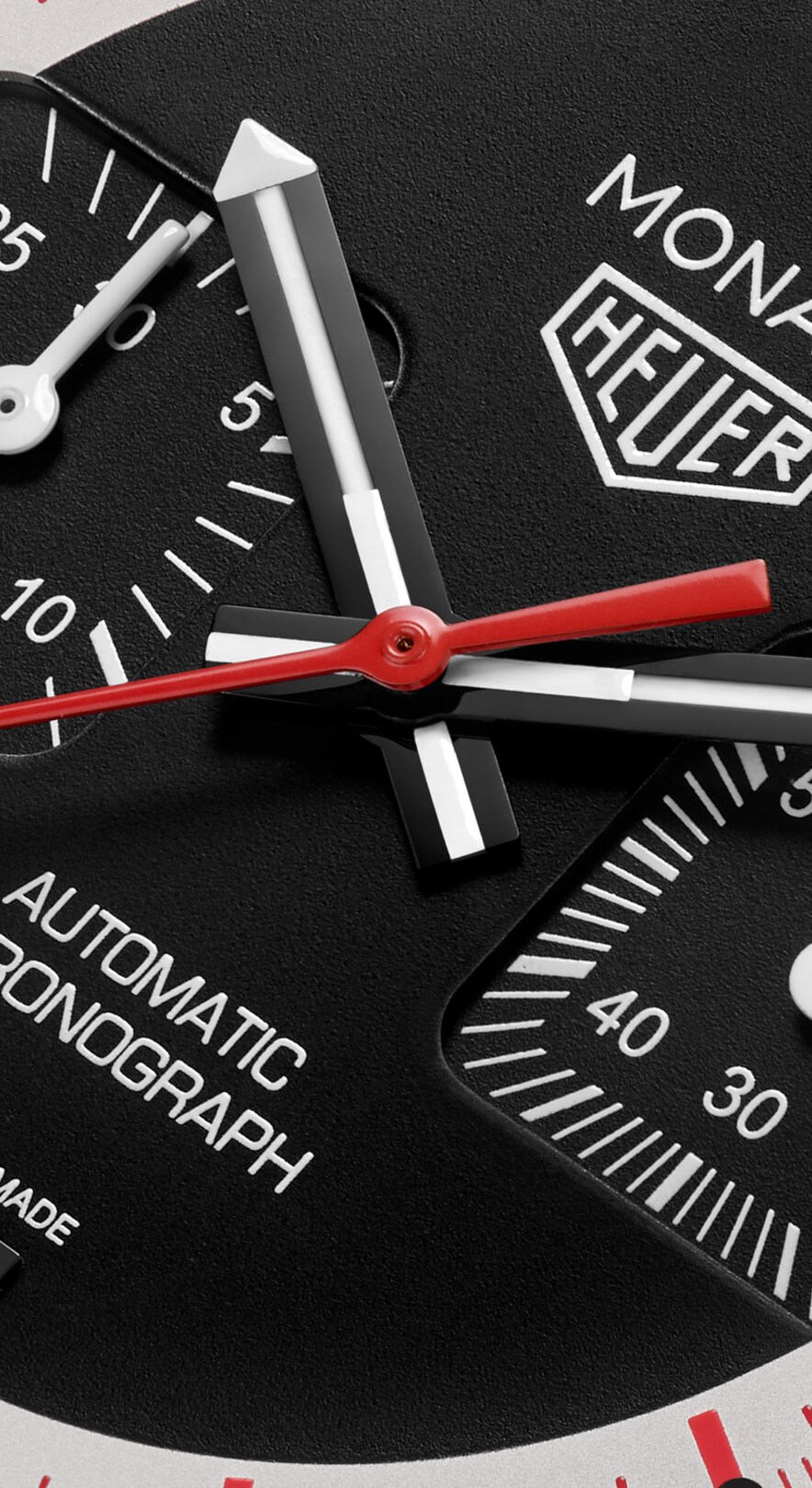 纯黑表盒缀以醒目的红色细节,与腕表的独特美学风格相得益彰。此款腕表将经典传承与现代设计浑然相融,以至简之姿尽显摩纳哥系列腕表的精髓。