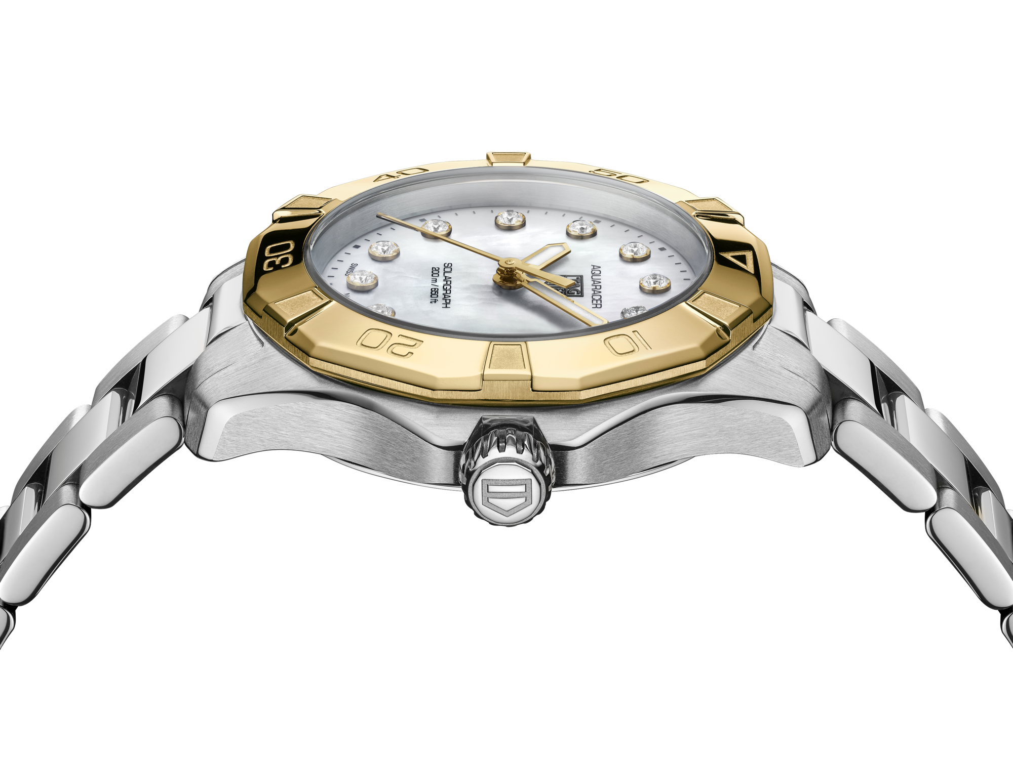 The elegant mother-of-pearl dial, featuring eleven precious 0.15cts diamonds, is designed to enhance light absorption, making every light interaction an opportunity to recharge.